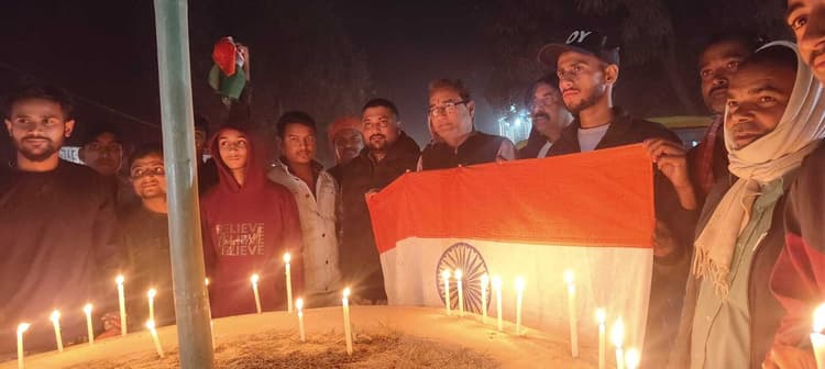 बलुआ बाजार. पुलवामा आतंकी हमला में शहीद जवानों की याद में विशुनपुर शिवराम चौक पर शुक्रवार की शाम भाजपा कार्यकर्ता निखिल सौरभ झा के नेतृत्व में कैंडल मार्च निकाल कर श्रद्धांजलि अर्पित किया. कैंडल मार्च में शामिल लोगों ने दो मिनट का मौन धारण कर नमन किया. लोगों ने बताया कि आज के दिन ही हमारे 40 सीआरपीएफ पर पुलवामा में आतंकी हमला में मारे गए थे. बताया कि इस दिन काला दिन के रूप में मना रहे हैं. निखिल सौरभ झा ने बताया कि यह दिन हर भारतीय को शहीदों के बलिदान का याद दिलाता है. कैंडल मार्च में रंजीत मिश्रा, भूपेंद्र मंडल, संजीव झा, कमलेश साह, गौतम रान, सुरेश पासवान, संजय झा, सौरभ भारद्वाज, रमन भारद्वाज अंकित झा आदि शामिल थे.