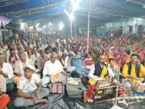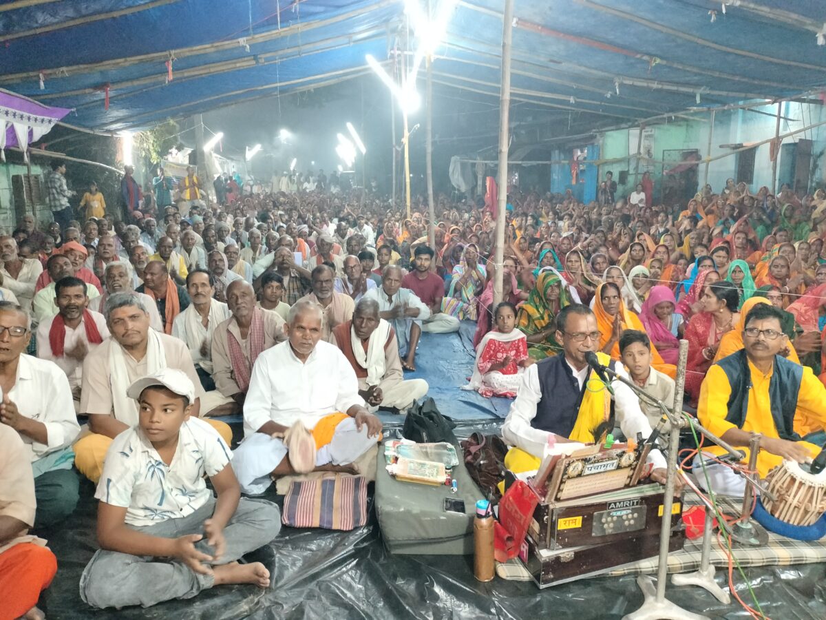 कथा पंडाल में भक्तों ने नृत्य और पुष्प वर्षा के साथ राम जन्म का उत्सव मनाया