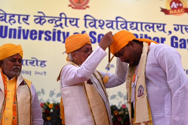 छातापुर. मुख्यालय पंचायत वार्ड संख्या 12 हाईस्कूल चौक निवासी छात्र सोना राज सुधांशु को राज्यपाल द्वारा गोल्ड मेडल से सम्मानित किया गया है. सुधांशु को यह मेडल सामाजिक विज्ञान संकाय में सर्वोत्तम स्नातकोत्तर के लिए दिया गया. दक्षिण बिहार केंद्रीय विश्वविद्यालय गया में गुरुवार को आयोजित चतुर्थ दीक्षांत समारोह में राज्यपाल आरिफ मोहम्मद खान के द्वारा गोल्ड मेडल पहनाकर प्रमाण पत्र दिया गया. मध्य विद्यालय छातापुर की एचएम कुशुमकला कुमारी व किसान ललन मेहता के पुत्र सुधांशु ने यह सम्मान पाकर छातापुर का मान बढ़ाया है और यहां के लोग गौरवान्वित महसूस कर रहे हैं. सम्मान पाकर हर्षित छात्र सोना राज सुधांशु ने बताया कि वे सिविल सर्विस के लिए लगातार अध्ययनरत हैं. सत्र 2019-21 में प्राप्तांक में टॉपर रहने पर उन्हें गोल्ड मेडल मिला है. गोल्ड मेडलिस्ट बनने से सिविल सर्विसेज की तैयारी के प्रति उनकी जिज्ञासा और बढ़ेगी. बताया कि इससे पूर्व उन्हें विश्वविद्यालय में 2020 में साहित्य सम्मान भी मिल चुका है. 2013 में स्नातक में भी वे गोल्ड मेडलिस्ट रहे हैं. बताया कि सिविल सर्विस में जाने के लिए बचपन से ही उनमें ललक है. सफलता के लिए वे लगातार परिश्रम कर रहे हैं. जब तक सफलता नहीं मिलती है, तब तक उनका प्रयास निरंतर जारी रहेगा. इधर सुधांशु को गोल्ड मेडल का सम्मान मिलने से माता-पिता के अलावे परिवार के लोग हर्षित हैं.