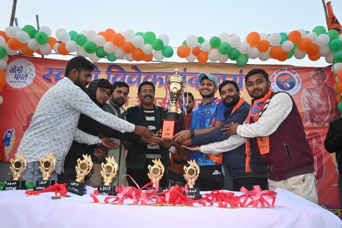 सुपौल. अखिल भारतीय विद्यार्थी परिषद जिला केंद्र सुपौल द्वारा स्वामी विवेकानंद जयंती सह राष्ट्रीय युवा दिवस के अवसर पर आयोजित पखवाड़ा कार्यक्रम के तहत भारत सेवक समाज महाविद्यालय परिसर में चल रहे क्रिकेट महाकुंभ का गुरुवार को भव्य समापन हुआ. समापन अवसर पर खेले गए फाइनल मुकाबले में छोटू इलेवन सुपौल और संदीप इलेवन भारत सेवक समाज महाविद्यालय के बीच रोमांचक मैच देखने को मिला. मैच में छोटू इलेवन सुपौल ने शानदार प्रदर्शन करते हुए जीत दर्ज की. समापन सह पुरस्कार वितरण समारोह के मुख्य अतिथि जिला क्रिकेट एसोसिएशन के अध्यक्ष राघवेंद्र झा राघव ने विजेता टीम को ट्रॉफी प्रदान कर खिलाड़ियों का उत्साहवर्धन किया. वहीं एबीवीपी उत्तर बिहार प्रांत के प्रांत संगठन मंत्री राकेश काशी, राष्ट्रीय कार्यकारिणी सदस्य सागर सत्या, प्रदेश मंत्री शिवजी कुमार, जिला संयोजक राजेश गुप्ता, नगर मंत्री आलोक कुमार एवं नगर अध्यक्ष ऋषभ कुमार ने संयुक्त रूप से उप विजेता टीम को ट्रॉफी एवं नगद पुरस्कार प्रदान किया. आयोजक एबीवीपी की ओर से विजेता टीम को ट्रॉफी, नकद पुरस्कार के साथ 11 हजार रुपये का चेक तथा उप विजेता टीम को 5100 रुपये का चेक देकर सम्मानित किया. उत्कृष्ट गेंदबाजी के लिए बिट्टू और शानदार बल्लेबाजी के लिए बंटी को विशेष पुरस्कार से नवाजा गया. कार्यक्रम को सफल बनाने में एबीवीपी छात्र नेता रंजीत कुमार झा की अहम भूमिका रही. मौके पर सुरेश कुमार सुमन, सुमन कुमार, राजेश कुमार, सुमन कुमार चंद, प्रकाश झा, मनोज सिंह, मनोरंजन कुमार, पंकज कुमार, कुंदन कुमार, अभय कुमार सहित कई गणमान्य लोग उपस्थित थे.