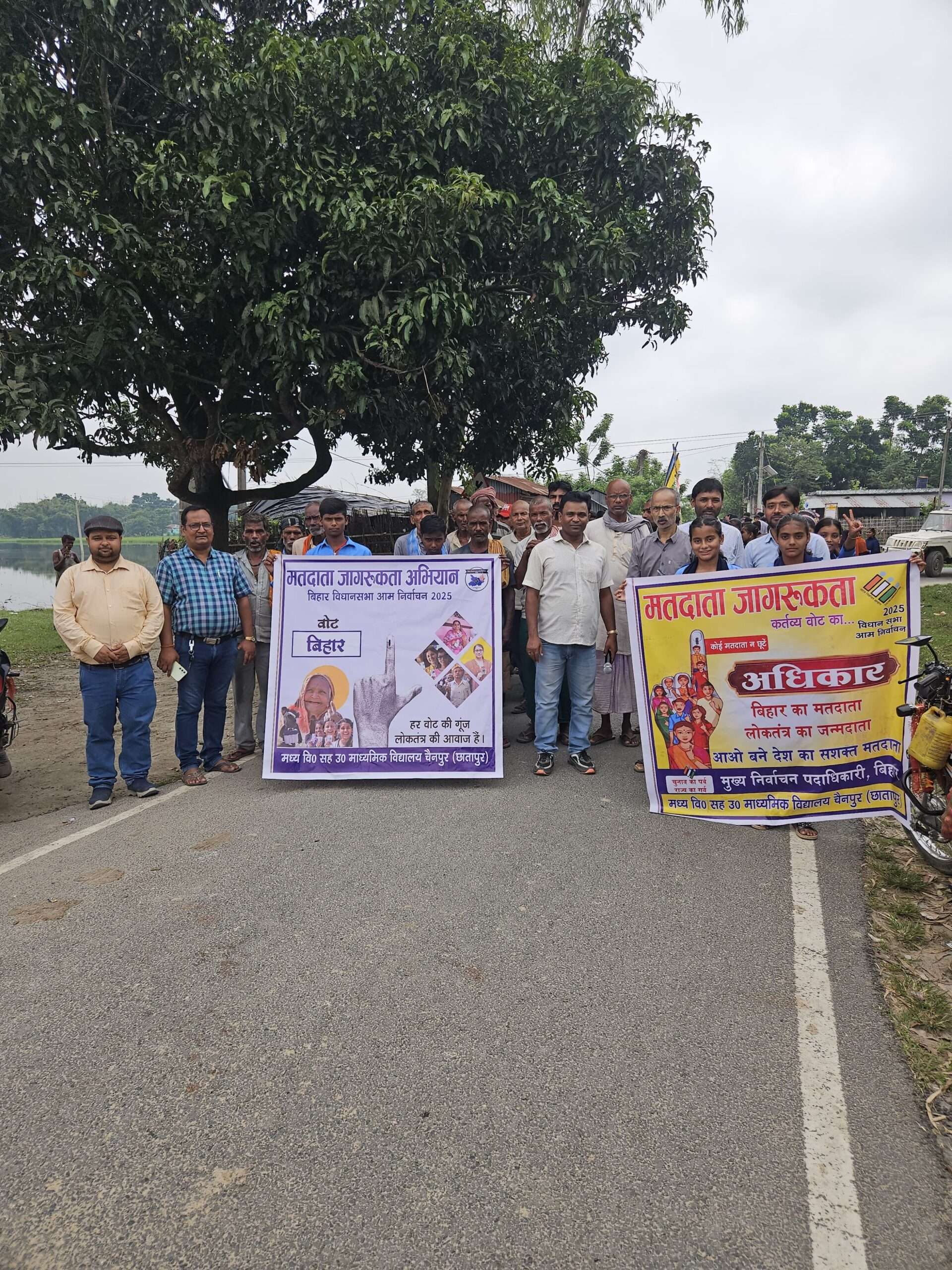 बलुआ बाजार. विधानसभा चुनाव को लेकर छातापुर प्रखंड के चैनपुर स्थित मध्य विद्यालय सह उच्च माध्यमिक विद्यालय चैनपुर के छात्रों ने मतदाता जागरूकता रैली निकाली. इसका नेतृत्व एचएम संजय कुमार सिंह कर रहे थे. छात्रों ने लोगों को 11 नवंबर को मतदान करने के लिए जागरूक किया. स्कूली बच्चों ने पहले जलपान-फिर मतदान, चाहे नर हो या नारी मतदान है सबकी जिम्मेदाररी, छोड़ो अपने सारे काम पहले चलो करें मतदान जैसे नारे लगाकर लोगों को मतदान के प्रति जागरूक किया. एचएम ने बताया कि विद्यालय स्तर पर मतदाता जागरूकता संबंधी कई गतिविधियां लगातार आयोजित की जा रही है. उन्होंने सभी मतदाताओं से लोकतंत्र को मजबूत करने के लिए अधिक से अधिक संख्या में मतदान करने का अनुरोध किया. मौके पर अर्चना कुमारी, ऋषीन, विवेकानंद विवेक, सुभाष माइकल, सुमित कुमार, तुषार कुमार, कंचन भारती, दिलीप कुमार दिनकर, धीरज कुमार आदि मौजूद थे.