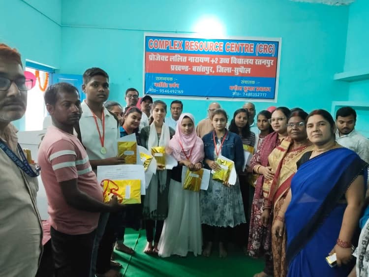 रतनपुर. बसंतपुर प्रखंड अंतर्गत प्रोजेक्ट ललित नारायण प्लस टू उच्च विद्यालय रतनपुर में सीआरसी कार्यालय में सभी उपकरण के अधिष्ठान के उपरांत इसका उद्घाटन किया गया. मुख्य अतिथि बीईओ अनिता कुमारी, विद्यालय के अध्यक्ष सुरेश चंद्र मिश्र, पूर्व प्रधानाध्यापक राघवेंद्र कंठ, मुखिया संतोष मेहता, समाजसेवी संजय कुमार मुन्ना ने दीप प्रज्वलित कर इसका शुभारंभ किया. इस अवसर पर वर्ष 2025 में मैट्रिक तथा इंटर में विद्यालय के टॉपर विद्यार्थियों को कलम, डायरी तथा प्रशस्ति पत्र देकर पुरस्कृत किया गया. मौके पर सीआरसी के अंतर्गत आने वाले 12 विद्यालयों के प्रधानाध्यापक, शिक्षक विनोद वर्मा, मीरा कुमारी, गणेश झा, अनिल कुमार, मदन, संतोष भारती, नीलू मिश्रा, रूबी कुमारी, अदिति प्रिया, रमेश कुमार, मुकेश कुमार सहित छात्र तथा छात्राएं उपस्थित थे.