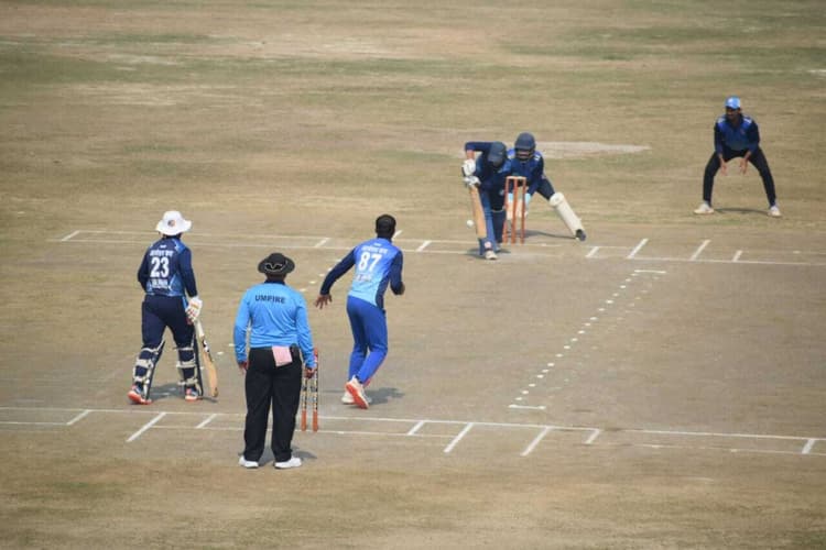 – मुजफ्फरपुर ने पहले बल्लेबाजी करते हुए बनाया 233 रन – दरभंगा की टीम ने 28.02 ओवर में लक्ष्य किया प्राप्त सुपौल. जिला मुख्यालय स्थित आउटडोर स्टेडियम में आयोजित अंतरराज्यीय आमंत्रण कप क्रिकेट टूर्नामेंट का पहला सेमीफाइनल मैच मंगलवार को मुजफ्फरपुर बनाम दरभंगा के बीच खेला गया. दरभंगा टीम ने मुजफ्फरपुर को 07 विकेट से हरा कर फाइनल में पहुंच गया. दरभंगा के कप्तान सुभाष चंद्रा ने टॉस जीतकर पहले गेंदबाजी करने का निर्णय लिया. पहले बल्लेबाजी करते हुए मुजफ्फरपुर की टीम ने निर्धारित 35 ओवर के मैच में 05 विकेट खोकर 233 रन बनाया. मुजफ्फरपुर की और से बल्लेबाज अतुल प्रियंकर ने 87 गेंद पर 08 चौका व 01 छक्का की मदद से 79 रनों की बेहतरीन पारी खेली. वही कुमार श्रेय ने 39 गेंद पर 08 चौका व 01 छक्का की मदद से 64 रन व अंकित कुमार ने 57 गेंद पर 05 चौका व 01 छक्का की मदद से 54 रन बनाया. सतीश कुमार ने 09 गेंद पर 02 चौका व 01 छक्का की मदद से 16 रन बनाया. दरभंगा के गेंदबाज शाकिबुल गनी ने 06 ओवर में 49 रन देकर 02 विकेट प्राप्त किया. वही त्रिपुरारी केशव, आमोद यादव एवं सुभाष चंद्रा ने 01-01 विकेट प्राप्त किया. 234 रनों के लक्ष्य का पीछा करने उतरी दरभंगा की टीम ने 28.2 ओवर में 03 विकेट खोकर 236 रन बनाकर मैच जीत लिया. दरभंगा टीम की ओर से बल्लेबाज केशव त्रिपुरारी ने 35 गेंद पर 07 चौका व 02 छक्का की मदद से नाबाद 58 रन बनाए. आयुष लोहारूका ने 16 गेंद पर 07 चौका व 04 छक्का की मदद से 54 रन बनाया. वही शाकिबुल गनी 53 गेंद पर 02 चौका की मदद से 47 रन व सचिन कुमार सिंह ने 38 गेंद पर 03 चौका 01 छक्का की मदद से 41 रन बनाए. मुजफ्फरपुर की ओर से गेंदबाज आदित्य राज ने 07 ओवर में 28 रन देकर 02 विकेट प्राप्त किया. वही तरुण कुमार ने 03 ओवर में 23 रन देकर 01 विकेट प्राप्त किया. मैच में निर्णयक के रूप में बीसीए पैनल के अंपायर अभय कुमार व अनिल गुप्ता मौजूद थे. स्कोरर के रूप में अभिषेक कामत एवं कॉमेंटेटर के रूप में पीएन शेखर थे. दरभंगा के शाकिबुल को मिला मैन ऑफ द मैच का पुरस्कार मैच में बेहतर प्रदर्शन करने वाले दरभंगा के खिलाड़ी शाकिबुल गनी को मैन ऑफ द मैच का पुरस्कार दिया गया. शाकिबुल गनी ने बल्लेबाजी में 47 रन बनाये वहीं गेंदबाजी में 06 ओवर में 49 रन देकर 02 विकेट प्राप्त किया.