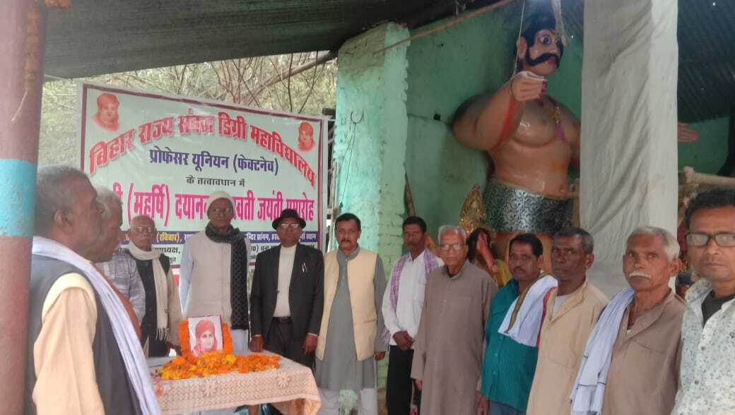 सुपौल बिहार राज्य सम्बद्ध डिग्री महाविद्यालय प्रोफेसर यूनियन फैक्टनेव के तत्वावधान में सदर प्रखंड के हरदी स्थित मां दुर्गा वीर लोरिक मंदिर परिसर में स्वामी महर्षि दयानंद सरस्वती जयंती समारोह मनाया गया. जयंती समारोह में शिक्षाविद् सहित गणमान्य नागरिकों ने हिस्सा लिया. मौके पर वक्ताओं ने कहा कि 19वीं सदी के महान संत महर्षि दयानंद सरस्वती की 200वीं जयंती समारोह पूर्वक मनायी जा रही है. कहा कि समाज में सामाजिक समरसता कायम करने में उन्होंने अग्रणी भूमिका निभायी. वक्ताओं ने उन्हें समाज में शिक्षा का प्रसार करने वाला धर्म सुधारक एवं देश का महान योद्धा बताया. इस मौके पर डॉ चंद्र प्रकाश यादव, जगदीश प्रसाद यादव, हृदय नारायण मुखिया, प्रो आलोक, देवेंद्र प्रसाद यादव, पृथ्वीचंद यादव, चंद्रशेखर झा, मुन्ना चमन, अशोक सादा, कालीचरण, रजानंद चौधरी, अशोक मालाकार, कृत्यानंद यादव, महेंद्र मंडल, लालबहादुर मंडल, दिगंबर मुखिया आदि मौजूद थे.