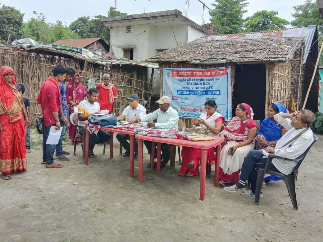 वीरपुर. अंबेडकर समग्र सेवा अभियान के तहत बसंतपुर प्रखंड के सात अलग-अलग पंचायतों के महादलित टोले में शनिवार को विकास शिविर का आयोजन किया गया. कुल 92 आवेदन प्राप्त हुए. जिनमें से 67 आवेदनों पर कार्रवाई करते हुए उन आवेदनों का निष्पादन किया गया. विकास शिविर का आयोजन कोचगामा पंचायत के वार्ड संख्या 04 स्थित लक्ष्मी राम के आवास पर लगाया गया. जहां श्रम प्रवर्तन पदाधिकारी अमित कुमार, बसंतपुर पंचायत के वार्ड संख्या 14 में बिंदु सादा के दरवाजे पर लगाया गया. जहां प्रखंड पंचायती राज पदाधिकारी प्रवीण कुमार प्रभाकर, कुसहर पंचायत के धोबी टोला में प्रखंड आपूर्ति पदाधिकारी मौजूद रहे. इसके अलावा ह्रदयनगर पंचायत के वार्ड नंबर 02 राम टोला में श्रवण कुमार के दरवाजे पर शिविर लगाया गया. जहां प्रखंड समन्वयक, परमानंदपुर पंचायत के राम एवं मुसहरी टोला में आयोजित शिविर में प्रखंड सहकारिता पदाधिकारी, बनेलीपट्टी पंचायत के वार्ड संख्या 02 राम टोला में प्रखंड कल्याण पदाधिकारी और बलभद्रपुर पंचायत के राम टोला में आयोजित शिविर में प्रखंड शिक्षा पदाधिकारी मौजूद थे. बीडीओ सुजीत कुमार मिश्रा ने बताया कि विभिन्न सात पंचायतों में आयोजित विकास शिविर में विभिन्न विभागों से जुड़े कुल 92 आवेदन प्राप्त हुए थे. जिनमें से 67 मामलों का ऑन द स्पोर्ट निष्पादन किया गया है. बताया कि आगे भी यह शिविर जारी रहेगा.
