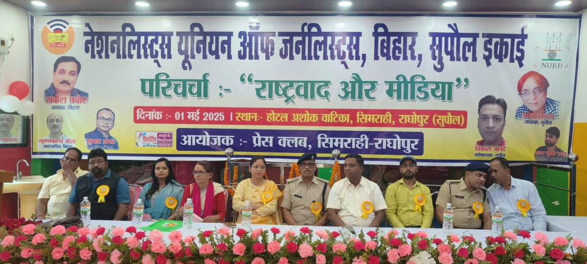 राघोपुर. सिमराही नगर पंचायत स्थित अशोक वाटिका होटल परिसर में गुरुवार को नेशनलिस्ट यूनियन ऑफ जर्नलिस्ट बिहार के बैनर तले जिलाध्यक्ष उपेंद्र चंदन की अध्यक्षता में जिला स्तरीय पत्रकार सम्मेलन आयोजित की गई. कार्यक्रम में मुख्य अतिथि के रूप में एसडीएम नीरज कुमार, एसडीपीओ सुरेंद्र कुमार, बीडीओ ओमप्रकाश, प्रशिक्षु बीडीओ, अंचलाधिकारी रश्मि प्रिया, कार्यपालक पदाधिकारी वीणा वैशाली, थानाध्यक्ष नवीन कुमार, भरत कुमार झा, कुमार अमर सहित अन्य मौजूद रहे. कार्यक्रम की शुरुआत दीप प्रज्वलित कर की गई. जिसके बाद डॉ राजेंद्र पब्लिक स्कूल के बच्चों ने स्वागत गान प्रस्तुत कर अतिथियों का स्वागत किया. स्वागत गान में पीहू कुमारी, शिल्पी संगम, स्नेहा कुमारी, रौशनी कुमारी, प्रतीक्षा कुमारी और भावना जैन ने अपनी प्रस्तुति दी. कार्यक्रम के मुख्य बिंदु राष्ट्रवाद और पत्रकारिता पर चर्चा करते अनुमंडल पदाधिकारी नीरज कुमार ने कहा कि पत्रकारिता ही राष्ट्रवाद है और यह देश का चौथा स्तंभ है. कहा कि पत्रकारों की भूमिका समाज में बहुत महत्वपूर्ण है और उन्हें अपनी जिम्मेदारी का निर्वहन ईमानदारी से करना चाहिए. प्रखंड विकास पदाधिकारी ओमप्रकाश ने राष्ट्रवाद पर विशेष चर्चा करते हुए कहा कि राष्ट्रवाद की भावना हर नागरिक में होनी चाहिए. कहा कि पत्रकारों को अपनी पत्रकारिता में राष्ट्रवाद की भावना को बढ़ावा देने का काम करना चाहिए. अनुमंडल पुलिस पदाधिकारी सुरेंद्र कुमार ने कहा कि पत्रकारों की भूमिका न केवल समाज में बल्कि पुलिस प्रशासन में भी बहुत महत्वपूर्ण है. कहा कि पत्रकारों को अपनी जिम्मेदारी का निर्वहन करते हुए समाज में सकारात्मक परिवर्तन लाने का काम करना चाहिए. वहीं कार्यपालक पदाधिकारी वीणा वैशाली ने कहा कि स्थानीय निकायों की योजनाओं की जानकारी आमजन तक पहुंचाने में पत्रकारों की भूमिका सराहनीय है. कार्यक्रम का संचालन डॉ राजेंद्र पब्लिक के प्राचार्य राजेश आर्या द्वारा किया गया. कार्यक्रम समापन उपरांत मनमोहक प्रस्तुति को लेकर डॉ राजेंद्र पब्लिक स्कूल के बच्चों को अनुमंडल पदाधिकारी के हाथों पुरस्कृत किया गया. कार्यक्रम को सफल बनाने में पत्रकार विकास आनंद, सुरेश सिंह, दीपक गुप्ता, अंकित कुमार, ब्रजेश कुमार, रंजीत कुमार, दिलीप भास्कर, विमल भारती, बलराम प्रसाद सिंह, सुशील यादव, अरुण जायसवाल और रोशन रसिक का सराहनीय योगदान रहा. कार्यक्रम में मनोज रोशन, मिथिलेश झा, प्रवीण कुमार झा, ओपी राजू आदि मौजूद थे.