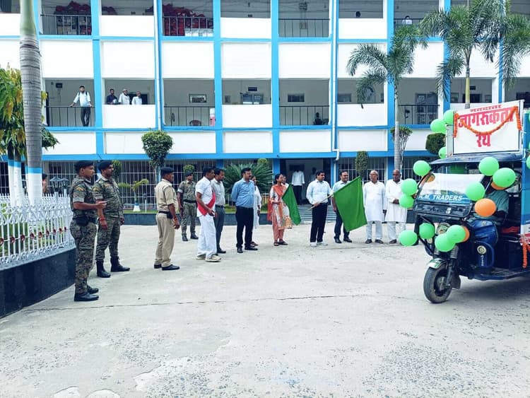 सुपौल. विशेष गहन पुनरीक्षण 2025 के तहत मतदाता जागरूकता अभियान को गति देने के लिए सोमवार को समाहरणालय परिसर से जागरूकता रथ को डीएम सावन कुमार ने हरी झंडी दिखाकर रवाना किया. इस अवसर पर डीएम ने कहा कि जागरूकता रथ के माध्यम से जिले के सभी पात्र मतदाताओं से अपील की जायेगी कि वे मतदाता सूची में अपना नाम जुड़वाने, विलोपन, स्थानांतरण या संशोधन के लिए सक्रिय भूमिका निभाएं. उन्होंने बताया कि दिनांक 01 अगस्त 2025 से 01 सितंबर 2025 तक जिले के सभी प्रखंड सह अंचल कार्यालय एवं नगर परिषद कार्यालय में विशेष कैंप आयोजित किए जा रहे हैं, जहां प्रतिदिन पूर्वाह्न 10 बजे से अपराह्न 05 बजे तक आवश्यक दस्तावेजों के साथ स्व-घोषणा पत्र जमा कर मतदाता सूची में नाम जुड़वाया जा सकता है. साथ ही मतदाता सूची से संबंधित सभी ऑनलाइन सेवाए. voters.eci.gov.in पोर्टल पर भी उपलब्ध हैं. कार्यक्रम में डीडीसी सारा अशरफ, अपर समाहर्ता सच्चिदानंद सुमन, जिला पंचायत राज पदाधिकारी गयानंद यादव, वरीय उप समाहर्त्ता मुकेश कुमार एवं अंजू कुमारी, जिला निबंधन एवं परामर्श केंद्र के प्रबंधक शैलेश कुमार, पंकज कुमार, विवेक कुमार, अभिषेक कुमार सहित अन्य पदाधिकारी एवं कर्मी उपस्थित थे.