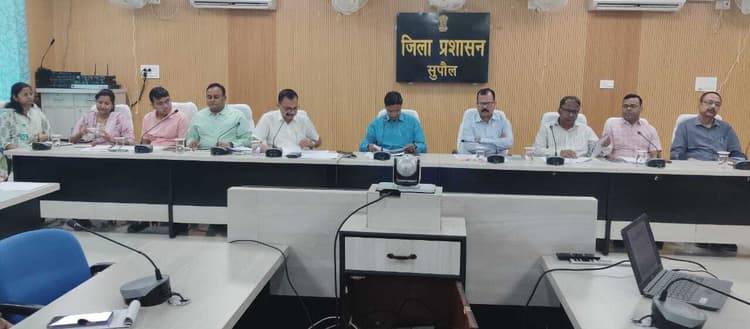 सुपौल समाहरणालय स्थित लहटन चौधरी सभागार में डीएम कौशल कुमार की अध्यक्षता में सभी विभाग के पदाधिकारियों के साथ जिला स्तरीय साप्ताहिक सोमवारीय बैठक सम्पन्न हुई. उक्त बैठक में न्यायालय संबंधी लंबित वादों की समीक्षा, जनता के दरबार में मुख्यमंत्री कार्यक्रम, ई-कम्प्लायंस डैशबोर्ड, सीपीग्राम, जिला जनता दरबार एवं अन्य विभागीय कार्यों से संबंधित प्रगति की समीक्षा की गयी. बैठक में अपर समाहर्ता राशिद कलीम अंसारी, डीडीसी सुधीर कुमार, बन्दोवस्त पदाधिकारी विनय कुमार साह, सिविल सर्जन डॉ ललन ठाकुर एवं जिलास्तरीय सभी पदाधिकारी, सभी अनुमंडल पदाधिकारी, सभी भूमि सुधार उप समाहर्त्ता, सभी प्रखंड विकास पदाधिकारी, सभी अंचल अधिकारी, सभी अवर निबंधक, सभी कार्यपालक पदाधिकारी, नगर परिषद, नगर पंचायत, वीडियो कॉन्फ्रेंसिंग के माध्यम से उपस्थित थे.