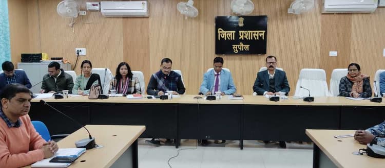 सुपौल समाहरणालय स्थित लहटन चौधरी सभागार में सोमवार को जिलाधिकारी कौशल कुमार की अध्यक्षता में सभी विभाग के पदाधिकारियों के साथ जिला स्तरीय साप्ताहिक सोमवारीय बैठक संपन्न हुई. बैठक में न्यायालय संबंधी लंबित वादों की समीक्षा, जनता के दरबार में मुख्यमंत्री कार्यक्रम, ई-कम्प्लायंस डैशबोर्ड, जिला जनता दरबार एवं अन्य विभागीय कार्यों से संबंधित प्रगति की समीक्षा की गयी. उक्त बैठक में अपर समाहर्त्ता राशिद कलीम अंसारी, सिविल सर्जन, जिला कृषि पदाधिकारी, जिला भू-अर्जन पदाधिकारी, विशेष कार्य पदाधिकारी जिला गोपनीय शाखा विकास कुमार कर्ण, श्रीति कुमारी, जिला प्रोग्राम पदाधिकारी आईसीडीएस, जिला योजना पदाधिकारी समेत सभी अनुमंडल पदाधिकारी, सभी प्रखंड विकास पदाधिकारी, सभी अंचल अधिकारी विडियो कॉन्फ्रेंसिंग के माध्यम से उपस्थित थे.