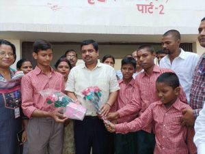 निरीक्षण के दौरान बच्चों ने जिलाधिकारी को हाथ से बनी पेंटिंग और गुलदस्ता उपहार स्वरूप भेंट किया