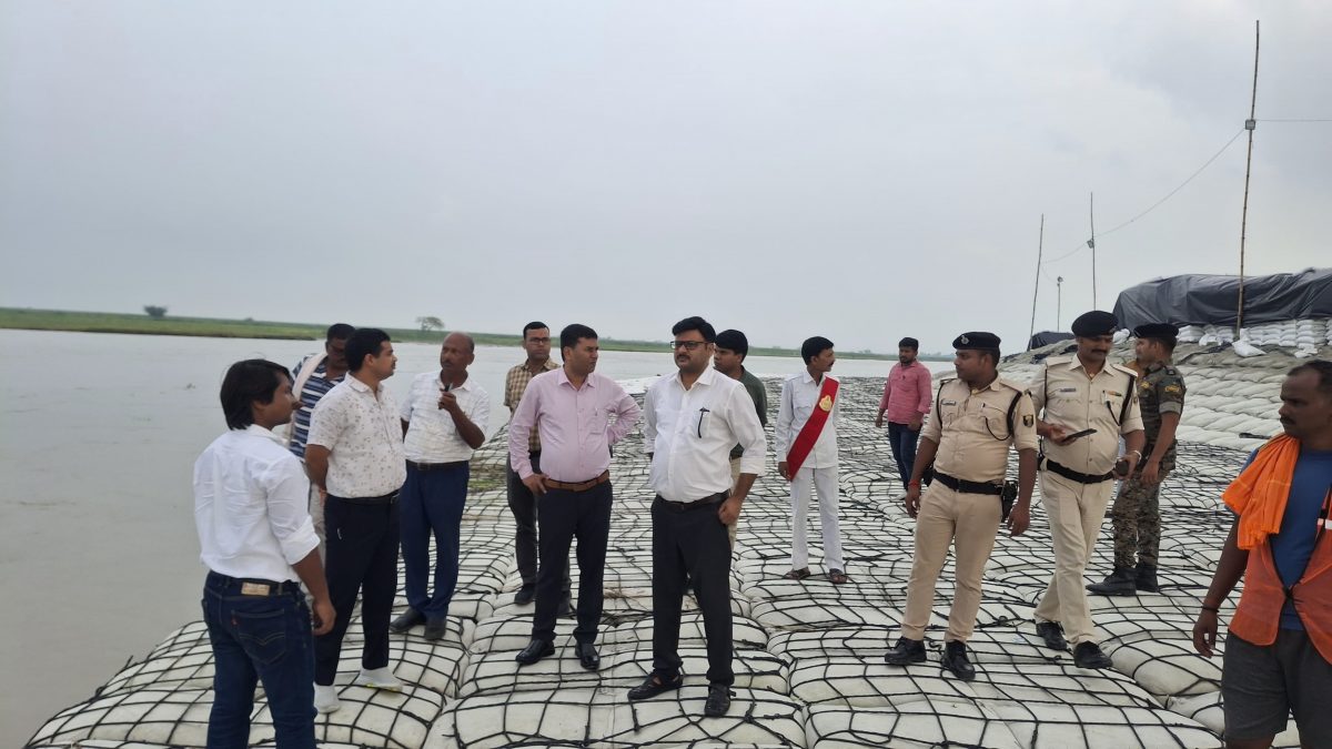 डीएम ने मझारी सीकरहट्टा से मंगासिहौल तक बांध का किया निरीक्षण