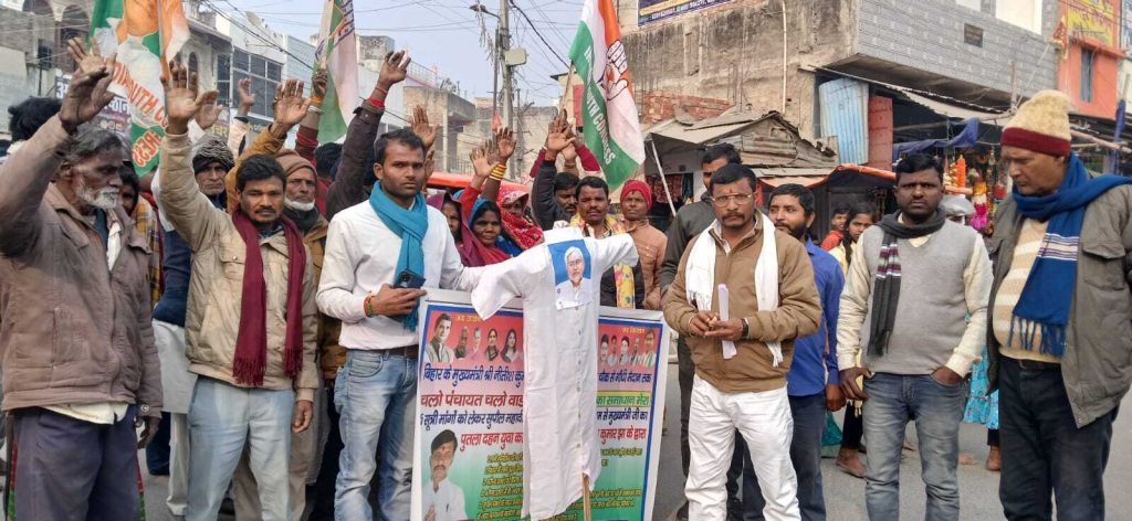 सुपौल. युवा कांग्रेस के प्रदेश सचिव लक्ष्मण कुमार झा के नेतृत्व में मंगलवार को शहर के महावीर चौक पर मुख्यमंत्री नीतीश कुमार का पुतला दहन किया गया. इस मौके पर श्री झा ने राज्य सरकार और मुख्यमंत्री पर जनता की समस्याओं की अनदेखी का आरोप लगाया. कहा कि अगर मुख्यमंत्री नीतीश कुमार उनकी मांगों पर विचार कर घोषणा करते तो पुतला दहन नहीं होता. श्री झा ने कहा कि बीते वर्ष सीएम नीतीश कुमार समाधान यात्रा के दौरान सदर प्रखंड के बलहा पंचायत के वार्ड नंबर 05 में महादलित बस्ती पहुंचे थे, लेकिन वहां के लोग अभी भी बुनियादी सुविधाओं से वंचित हैं. उन्होंने मांग किया कि बलहा पंचायत में महादलित बस्ती के लिए उचित रास्ता बनाया जाए, भारतमाला परियोजना के तहत विस्थापित परिवारों को मुआवजा मिले और पांच डिसमिल जमीन का पर्चा और आवास मुहैया कराया जाए सहित अन्य मांगों पर विचार नहीं किया गया तो चरणबद्ध तरीके से संघर्ष जारी रहेगा. मौके पर रमेश मल्लिक, दिनेश मल्लिक, दल्लू सदा, लखन मंडल, मुनचुन सदा, सुरेश पासी, अनीता देवी, टिंकू देवी, पवित्री देवी, सूरज कुमार, मुकेश कुमार आदि कार्यकर्ता मौजूद थे.