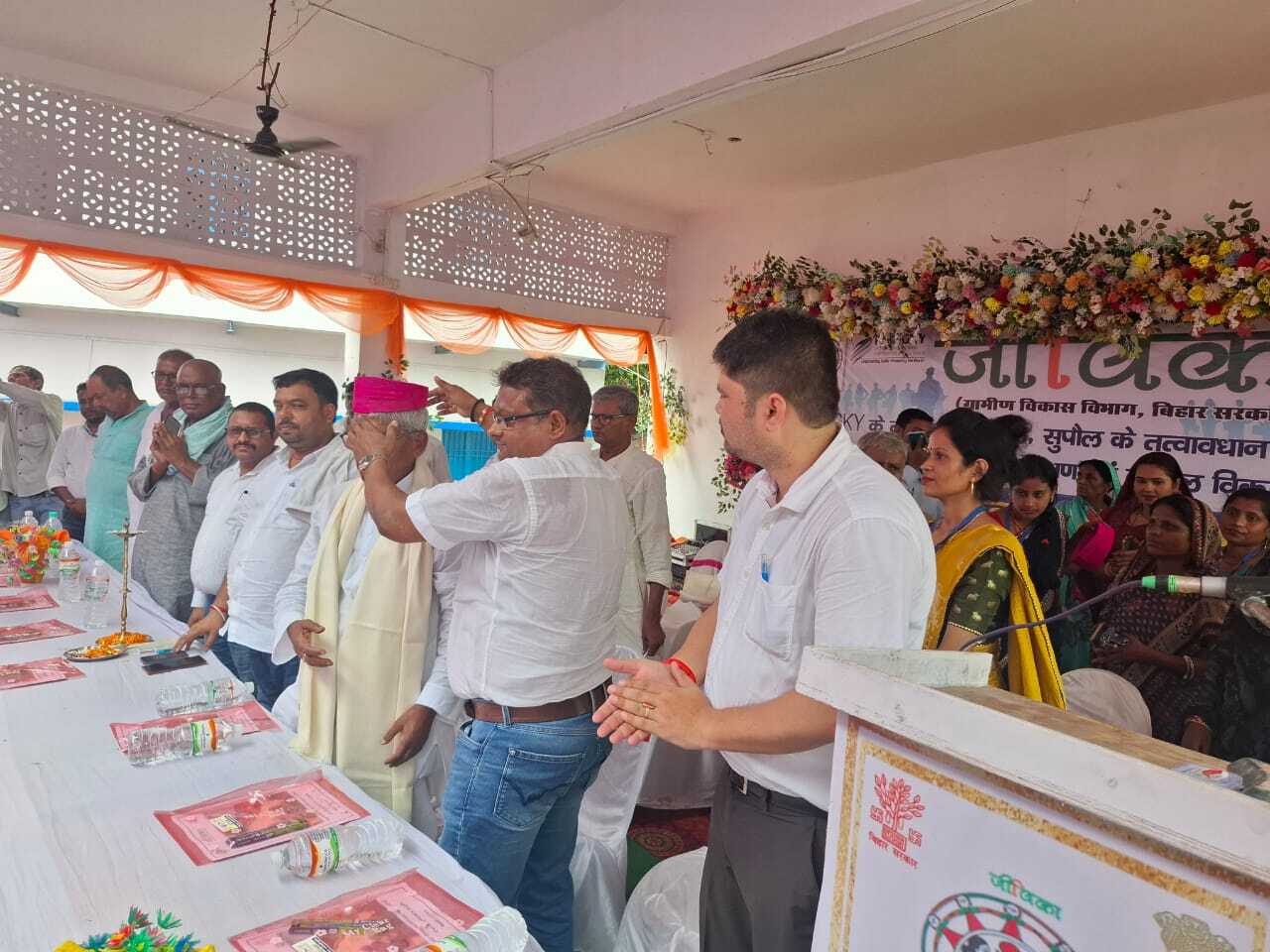 -दो हजार युवाओं ने किया आवेदन सरायगढ़. बीएन इंटर कॉलेज, भपटियाही में शुक्रवार को पंडित दीनदयाल उपाध्याय ग्रामीण कौशल्य योजना अंतर्गत जीविका सरायगढ़ प्रखंड इकाई की ओर से रोजगार सह मार्गदर्शन मेला का आयोजन किया गया. मेले का उद्घाटन विधायक अनिरुद्ध प्रसाद यादव, प्रखंड प्रमुख विजय कुमार यादव, बीडीओ अच्युतानंद तथा प्रखंड परियोजना प्रबंधक मृत्युंजय कुंवर ने संयुक्त रूप से दीप प्रज्वलित कर किया. इस अवसर पर विधायक अनिरुद्ध प्रसाद यादव ने कहा कि ऐसे मेले से सरायगढ़-भपटियाही, निर्मली, किशनपुर और राघोपुर प्रखंड के 18 से 35 वर्ष आयु वर्ग के बेरोजगार युवाओं को देश के विभिन्न राज्यों में रोजगार का अवसर मिलेगा. उन्होंने बताया कि रोजगार मेला में देशभर की 20 कंपनियों ने भाग लिया है, जो ग्रामीण युवाओं को रोजगार, स्वरोजगार, प्रशिक्षण एवं कौशल विकास से जोड़ेंगी. प्रखंड प्रमुख विजय कुमार यादव ने कहा कि यह मेला बेरोजगार युवाओं के लिए एक सुनहरा अवसर है, जिससे उन्हें रोजगार पाने में सुविधा होगी. प्रखंड परियोजना प्रबंधक मृत्युंजय कुंवर ने बताया कि मेले में लगभग 02 हजार युवक-युवतियों से आवेदन फार्म प्राप्त हुए हैं. आवेदकों से शैक्षणिक प्रमाण पत्र, आयु प्रमाण, आधार कार्ड की छायाप्रति और दो पासपोर्ट फोटो सहित आवश्यक दस्तावेज लिए गए हैं. मेला में चयनित युवाओं को नि:शुल्क प्रशिक्षण प्रदान कर बिहार सहित अन्य राज्यों की कंपनियों में नियोजित किया जाएगा. इस अवसर पर बीडीओ अच्युतानंद, मनरेगा पीओ बसंत कुमार, जदयू जिला उपाध्यक्ष सुरेश प्रसाद सिंह, मुखिया विजय कुमार यादव, जदयू प्रखंड अध्यक्ष सूर्य नारायण मेहता, सहित अन्य पंचायत जनप्रतिनिधियों ने कार्यक्रम को संबोधित किया. कार्यक्रम में बड़ी संख्या में जीविका दीदी व स्थानीय लोग उपस्थित रहे.