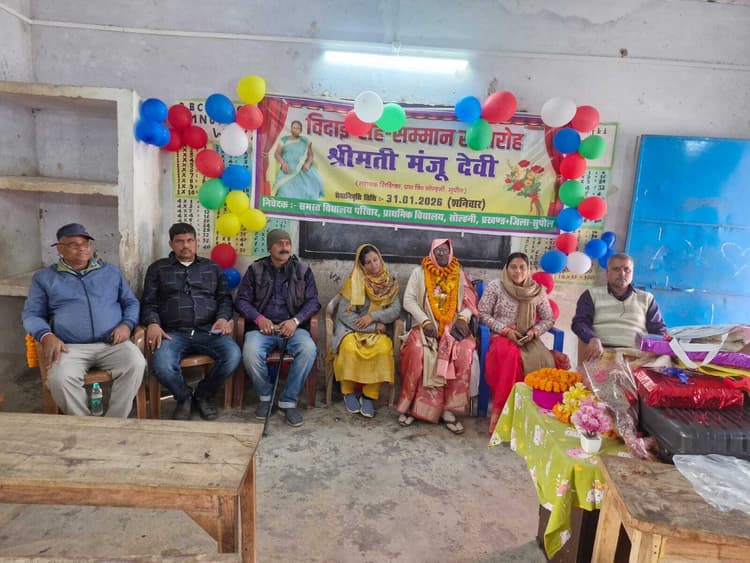 सदर प्रखंड के प्राथमिक विद्यालय सोल्हनी की प्रधानाध्यापक मंजू देवी की सेवानिवृत्ति पर विदाई सह सम्मान समारोह का आयोजन किया गया.
