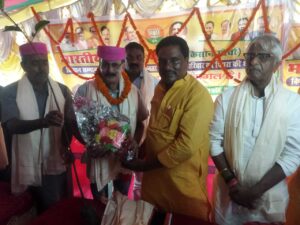 -भव्य किसान सम्मान सम्मेलन का हुआ आयोजन पिपरा. मां काली मीन फार्म परिसर में भारतीय जनता पार्टी किसान मोर्चा की ओर से रविवार को भव्य किसान सम्मान सम्मेलन का आयोजन किया गया. इस अवसर पर भाजपा जिला अध्यक्ष नरेंद्र ऋषि देव, पूर्व जिलाध्यक्ष डॉ विजय शंकर चौधरी, मनोज सिंह, प्रदीप सिंह, पिंटू मंडल, मनोज पाठक समेत कई पदाधिकारी उपस्थित थे. कार्यक्रम की अध्यक्षता भाजपा जिला किसान मोर्चा अध्यक्ष प्रवीण कुमार झा ने की. उन्होंने सभी अतिथियों का पारंपरिक तरीके से पाग, बुके और माला पहनाकर स्वागत एवं सम्मान किया. सम्मेलन को संबोधित करते हुए भाजपा जिला अध्यक्ष नरेंद्र ऋषि देव ने कहा कि किसान देश की रीढ़ हैं. वर्तमान सरकार किसानों की आय बढ़ाने एवं उन्हें आत्मनिर्भर बनाने के लिए निरंतर कार्य कर रही है. डॉ चौधरी ने कहा कि मछली पालन, मुर्गी पालन एवं कृषि आधारित योजनाओं पर सब्सिडी प्रदान कर किसानों का मनोबल बढ़ाया जा रहा है. साथ ही समय-समय पर वैज्ञानिकों द्वारा किसानों को आधुनिक तकनीक और उन्नत खेती की जानकारी देने हेतु प्रशिक्षण भी उपलब्ध कराया जा रहा है. इस अवसर पर उपस्थित किसानों को प्रवीण कुमार झा द्वारा सम्मान स्वरूप गमछा और पौधे भेंट किए गए. सम्मेलन में किसानों की भारी उपस्थिति से कार्यक्रम सफल और यादगार बन गया.