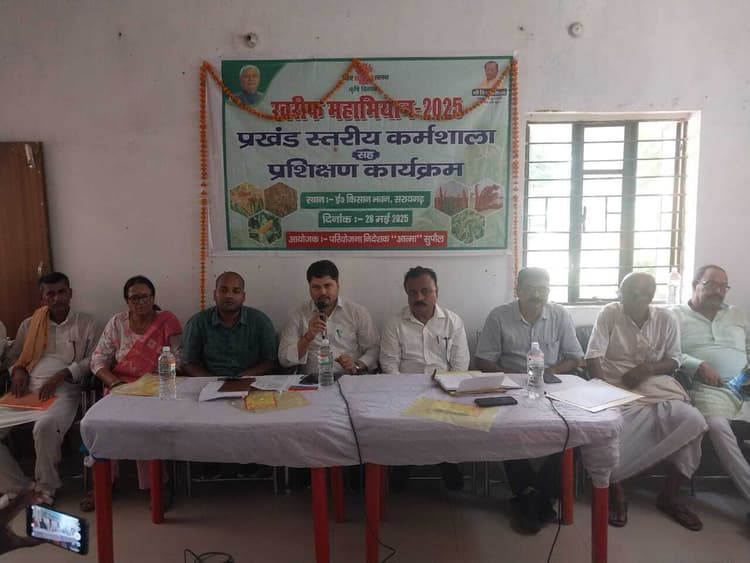 – खरीफ महाअभियान 2025 के तहत प्रखंड स्तरीय कर्मशाला सह प्रशिक्षण कार्यक्रम आयोजित सरायगढ़. ई किसान भवन सरायगढ़ में बुधवार को खरीफ महाअभियान 2025 को लेकर प्रखंड स्तरीय कर्मशाला सह प्रशिक्षण कार्यक्रम का आयोजन किया गया. कार्यक्रम में प्रखंड क्षेत्र के विभिन्न पंचायतों से दर्जनों किसानों ने भाग लिया. कार्यक्रम का विधिवत उद्घाटन बीडीओ अच्युतानंद, बीएओ चंन्द्र प्रकाश मिश्र, कृषि वैज्ञानिक डॉ नित्यानंद, आत्मा अध्यक्ष ज्ञानदेव मेहता, बीस सूत्री अध्यक्ष सूर्य नारायण मेहता, बीईओ रीता कुमारी, बीसीओ शिव शंकर पंडित, पूर्व मुखिया सुरेश प्रसाद सिंह, विजय कुमार सिंह, प्रभू कुमार मेहता सहित अन्य ने संयुक्त रूप से दीप प्रज्वलित कर किया. प्रखंड स्तरीय कर्मशाला को संबोधित करते हुए कृषि वैज्ञानिक डॉ नित्यानंद ने कहा कि खेतों का मिट्टी जांच जरूरी है. हमलोग खेतों में अंधाधुंध रसायनिक खाद का प्रयोग कर रहे हैं. यह खेतों के लिए सही नहीं है. अत्यधिक रसायनिक खाद का प्रयोग करने से खेतों में जीवांश पदार्थ कम हो जाता है. जिससे उर्वरा शक्ति कम हो जाती है. अगर खेतों में जिवांश पदार्थ कम होगा तो मिट्टी जहरीली, बंजर और खेतों की उर्वरा शक्ति कम हो जाएगी. इसलिए जैविक खेती करना बहुत ही जरूरी है. उन्होंने कहा कि सुपौल जिले में धान की खेती बड़े पैमाने पर की जाती है. इस बार जिला से हाइब्रिड धान बीज उपलब्ध कराया गया है. वहीं कृषि पदाधिकारी चंद्र प्रकाश मिश्र ने खरीफ फसल में फसल उत्पादन, आधुनिक तकनीकी,बीज चयन, उर्वरक प्रबंधन एवं जलवायु अनुकूल कृषि पद्धतियों पर विस्तृत रूप में चर्चा की. उन्होंने कहा कि किसानों को कृषि यंत्र में सतत विकास और उत्पादन बढ़ाने के लिए वैज्ञानिक तरीके से खेती आवश्यक है. किसानों को परंपरागत खेती के साथ साथ उन्नत बीज, मृदा परीक्षण और जल प्रबंधन जैसे आधुनिक उपायों को अपनाकर खेती करने की जरूरत है. कहा कि किसान चौपाल कार्यक्रम प्रत्येक पंचायतों में किया जाएगा. बीडीओ अच्युतानंद ने कहा कि सरकार द्वारा संचालित विभिन्न प्रकार के योजनाओं का लाभ किसानों तक पहुंचे. इसके लिए कृषि विभाग द्वारा समय समय पर किसानों को जागरूक किया जा रहा है. कहा कि तकनीकी सहयोग का लाभ तभी मिलेगा जब किसान जागरूक होंगे. कृषि यंत्र अनुदान पर उपलब्ध है. खरीफ महाअभियान में कृषि समन्वयक बीरेंद्र कुमार, विवेकानंद, अनुज कुमार, एटीएम भागवत यादव, कार्यपालक सहायक दिलीप कुमार, लेखापाल लवली कुमारी, किसान सलाहकार अरविंद कुमार, श्याम कुमार भारती, देवेन्द्र कुमार भारती, चन्दन कुमार सिंह, राजेश कुमार, रत्नेश कुमार, ममता कुमारी, शिवराम यादव, उमेश मंडल, किशोर ठाकुर, गगन पासवान आदि मौजूद थे.