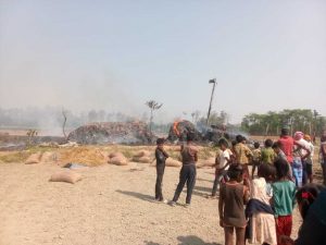 चूल्हे की चिंगारी से लगी आग, तीन घर जल कर राख