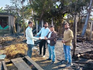 सरायगढ़. प्रखंड क्षेत्र के लौकहा पंचायत के गोपालपुर गांव में शनिवार की मध्य रात्रि में घुरा से आग लग जाने के कारण दो परिवार का दो घर जल गये. घटना के संबंध में बताया जा रहा है कि गोपालपुर गांव के वीरेंद्र यादव के घर में घुरा से अचानक आग लगने के कारण अनाज, कपड़ा, बर्तन सहित अन्य सामग्री जलकर राख हो गई. आग की लपटे इतनी तेज थी कि पड़ोस के रविंद्र यादव के भी एक फूस का घर जल कर राख हो गया. स्थानीय ग्रामीणों द्वारा कड़ी मशक्कत के बाद आग पर काबू पाया गया. घटना की सूचना पर रविवार को सीओ धीरज कुमार, राजस्व कर्मचारी प्रभात कुमार ने घटना स्थल पर पहुंचकर मामले की जांच किया. सीओ धीरज कुमार ने बताया कि अगलगी की घटना में पीड़ित परिवार वीरेंद्र यादव और रविंद्र यादव को पॉलीथिन शीट और तत्काल सहायता राशि के लिए 12 – 12 हजार रुपए का चेक दिया गया है.