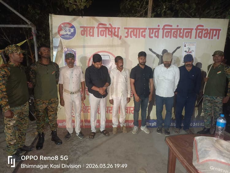 – नेपाल से लौटने के क्रम में भीमनगर बॉर्डर पर उत्पाद टीम को मिली सफलता वीरपुर. सुपौल उत्पाद विभाग की टीम ने भीमनगर बॉर्डर पर नियमित जांच के दौरान नशे की हालत में पांच लोगों को पकड़ा, जिसकी पुष्टि ब्रेथ एनलाइजर मशीन से की गई है. पकड़े गए पांच लोगों में तीन शिक्षक बताए जा रहे हैं, जो मधेपुरा जिला से मुख्यमंत्री बिहार दर्शन योजना के तहत बच्चों को लेकर कोसी बराज गए थे. वहीं वापसी के क्रम में जब भीमनगर उत्पाद विभाग के चेक पोस्ट पर लोगों की जांच की जा रही थी. जांच के क्रम में उत्पाद विभाग की टीम ने पांच लोगों को शराब के नशे में पकड़ा. जांच के दौरान उत्पाद विभाग के निरीक्षक संजय प्रियदर्शी के साथ साथ अन्य कर्मी मौजूद थे. उत्पाद विभाग के इंस्पेक्टर संजय प्रियदर्शी ने बताया कि सभी के शराब पीने की पुष्टि की गई है. मामले को लेकर अग्रेतर कार्रवाई करते हुए सभी न्यायिक हिरासत में भेज दिया गया.