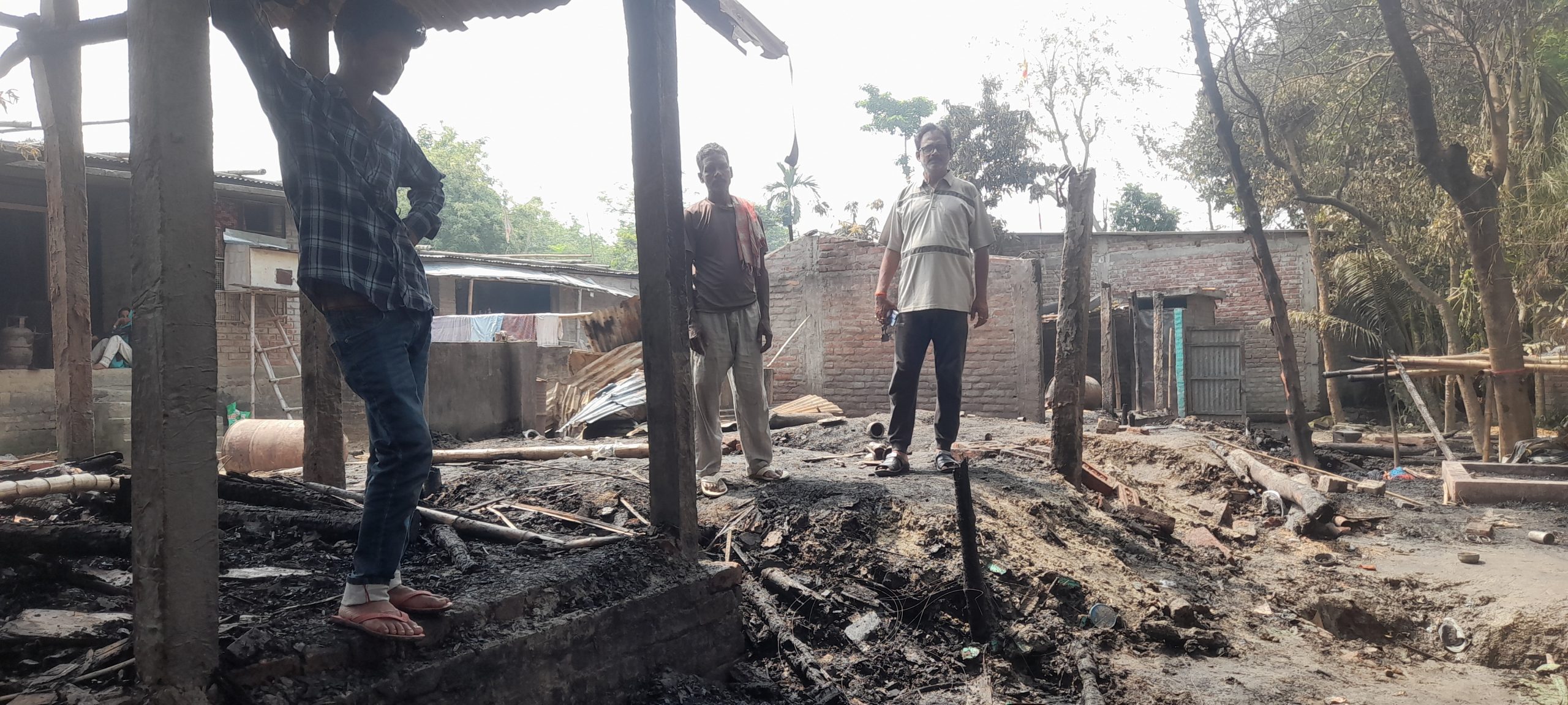 प्रतापगंज. प्रखंड अंतर्गत भवानीपुर उत्तर पंचायत के वार्ड नंबर 02 में मंगलवार की रात भीषण अग्निकांड में चार परिवारों के पांच घर जल गये. इस हादसे में करीब 05 से 06 लाख रुपये की संपत्ति का नुकसान हुआ है. आग की शुरुआत अख्तर के घर से हुई, जिसे सबसे पहले पास ही पंचायत सरकार भवन निर्माण कार्य में कार्यरत मुंशी ने देखा. उन्होंने आग की लपटें उठती देख शोर मचाया, जिसके बाद स्थानीय लोग और पीड़ित परिवार के सदस्य मौके पर पहुंचे और आग बुझाने का प्रयास करने लगे. घटना की जानकारी तत्काल पंचायत के मुखिया प्रताप विराजी और सरपंच मजीद साफी को दी गयी. दोनों जनप्रतिनिधि घटनास्थल पर पहुंचे और रास्ते से ही प्रतापगंज और भीमपुर थाना सहित वीरपुर अनुमंडल प्रशासन को घटना की सूचना दी. सूचना मिलते ही दमकल की गाड़ियां मौके पर पहुंची और करीब दो घंटे की कड़ी मशक्कत के बाद आग पर काबू पाया जा सका. अग्निकांड में बुचाई साफी का एक घर पूरी तरह जल गया, जिसमें अनाज, फर्नीचर, बर्तन, गैस सिलेंडर, नकदी तीन हजार एवं महत्वपूर्ण कागजात राख हो गये. वहीं अख्तर के दो घरों के साथ-साथ सारा घरेलू सामान जलकर नष्ट हो गया. मो रहमान साफी का एक घर और मो जाकिर के दो घर भी आग की चपेट में आ गए, जिसमें रखा सारा सामान नष्ट हो गया. घटना की सूचना अंचलाधिकारी प्रतापगंज को भी दी गयी है. हालांकि समाचार लिखे जाने तक पीड़ित परिवारों को किसी प्रकार की सरकारी या गैर-सरकारी सहायता नहीं मिल पायी थी.