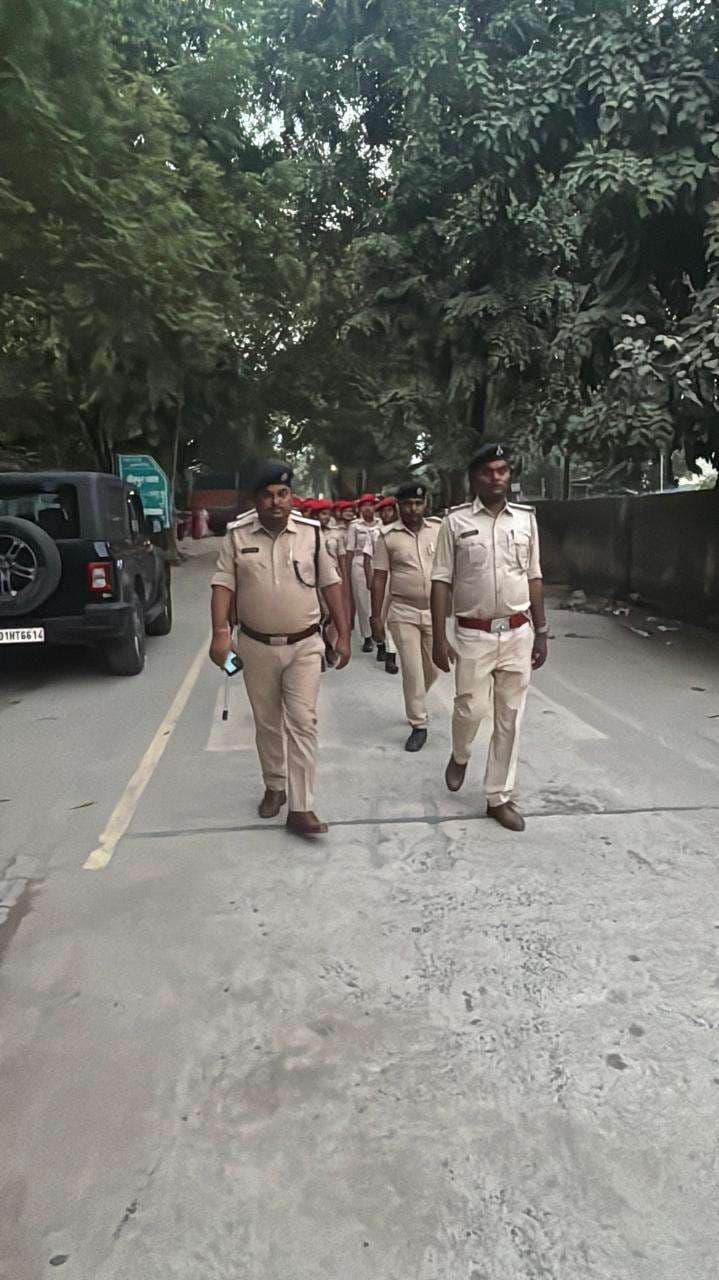वीरपुर. विधानसभा चुनाव के दूसरे चरण में 11 नवम्बर को छातापुर में मतदान होना है. इसको लेकर तैयारी की जा रही है. शांतिपूर्ण, निष्पक्ष व भयमुक्त वातावरण में चुनाव संपन्न कराने को लेकर वीरपुर मुख्यालय में अतिरिक्त पुलिस बल की तैनाती की गई है. वाहनों की जांच की जा रही है और फ्लैग मार्च भी निकाला जा रहा है. शुक्रवार की शाम थानाध्यक्ष राजकिशोर मंडल और सीओ हेमंत कुमार की अध्यक्षता में थाना परिसर से फ्लैग मार्च निकाला गया. फ्लैग मार्च थाना से निकल कर गोल चौक होते हुए मेन रोड,, पुरानी बाजार, हटिया चौक, सुभाष चौक, कारगिल चौक के रास्ते पुनः थाना पहुंची. सीओ ने बताया कि शांतिपूर्ण मतदान कराने को लेकर प्रशासन पूरी तरह गंभीर है. इसलिए लगातार वाहनों की जांच की जा रही है. फ्लैग मार्च निकाले जा रहें हैं.