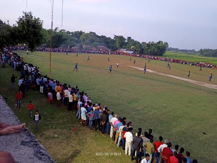 त्रिवेणीगंज. नगर परिषद क्षेत्र के वार्ड नंबर 24 स्थित मध्य विद्यालय डपरखा प्रांगण में श्रीकृष्ण जन्माष्टमी के अवसर पर आयोजित तीन दिवसीय स्व अमरेंद्र यादव मेमोरियल अनुमंडल स्तरीय फुटबॉल टूर्नामेंट का फाइनल मुकाबला सोमवार की शाम खेला गया. रोमांचक फाइनल में मधुबनी की टीम ने पुरीख सहरसा को 2–1 से हराकर खिताब अपने नाम कर लिया. फाइनल मुकाबले में शुरुआत से ही दोनों टीमों के बीच जबरदस्त संघर्ष देखने को मिला. पहले हाफ में दोनों टीमों ने एक-एक गोल दागकर स्कोर बराबर कर लिया. हालांकि मैच के अंतिम क्षणों में मधुबनी के खिलाड़ियों ने शानदार तालमेल और आक्रामक खेल दिखाते हुए दूसरा गोल किया और टूर्नामेंट जीत लिया. मैदान पर मौजूद बड़ी संख्या में दर्शकों का उत्साह देखने लायक था. हर गोल पर गूंजती तालियों और जयकारों ने माहौल को और रोमांचक बना दिया. टूर्नामेंट का उद्घाटन राजद जिलाध्यक्ष संतोष सरदार, समाजसेवी राजेंद्र यादव, पैक्स अध्यक्ष अश्विनी कुमार उर्फ डब्लू, ई विजय कुमार, सानू यादव, नवीन कुमार उर्फ बोआ और त्रिलोक कुमार ने संयुक्त रूप से फीता काटकर किया. मैच के निर्णायक की भूमिका पूर्व प्रखंड प्रमुख छोटेलाल यादव और धीरेंद्र यादव उर्फ भूषण ने निभाई, जबकि कमेंट्री शैलेंद्र यादव और प्रद्युम्न कुमार ने की. समापन समारोह में विजेता और उपविजेता टीमों को ट्रॉफी और नगद पुरस्कार प्रदान कर सम्मानित किया गया. साथ ही खिलाड़ियों को बेस्ट गोलकीपर, बेस्ट गोलर और बेस्ट डिफेंडर की ट्रॉफी भी दी गई. आयोजक सानू यादव और रानू कुमार ने बताया कि हर वर्ष की भांति इस बार भी तीन दिवसीय फुटबॉल टूर्नामेंट का सफल आयोजन किया गया. आने वाले वर्षों में इस प्रतियोगिता को और भव्य रूप देने की योजना है. अतिथियों ने कहा कि ऐसे आयोजनों से ग्रामीण क्षेत्रों के खिलाड़ियों की छुपी प्रतिभा को निखारने का मौका मिलता है और युवाओं में खेल के प्रति रुचि बढ़ती है. टूर्नामेंट को सफल बनाने में रवि स्टार, मिनकेश कुमार, त्रिलोक कुमार, सानू कुमार, शैशव कुमार, ईश्वर प्रकाश, देवगन कुमार, आदित्य, ज्योतिष, राजीव, मुकेश, गणेश, बबलू, पिंकू, चिक्कू सहित कई लोगों ने सक्रिय भूमिका निभाई.