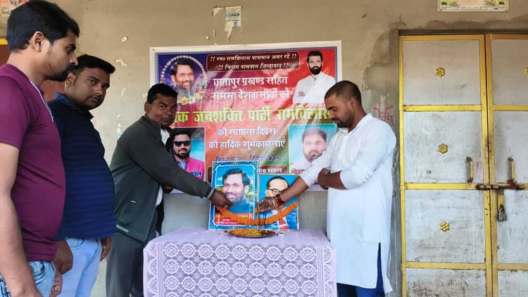 छातापुर. लोजपा रामविलास के प्रखंड अध्यक्ष सरोज कुमार मंडल के परियाही स्थित आवास पर शुक्रवार को पार्टी का स्थापना दिवस समारोह पूर्वक मनाया गया. प्रखंड अध्यक्ष श्री मंडल के नेतृत्व आयोजित कार्यक्रम में कार्यकर्ताओं ने स्व रामविलास पासवान एवं डॉ भीमराव अंबेडकर के तैलचित्र पर श्रद्धासुमन अर्पित किया. वहीं पार्टी संगठन को मजबूत बनाने व विचारधारा को जन जन तक पहुंचाने का संकल्प दिलाया गया. प्रखंड अध्यक्ष ने बताया कि पार्टी के राष्ट्रीय अध्यक्ष सह केंद्रीय मंत्री चिराग पासवान जिस तरह पीएम नरेंद्र मोदी के हनुमान कहलाते हैं. ठीक उसी तरह वे भी खुद को चिराग पासवान के हनुमान मानते हैं. कहा कि पार्टी के नेता व कार्यकर्ता पार्टी के लिए समर्पित भाव से काम कर चिराग पासवान के हाथों को मजबूर करने में जुटे हुए हैं. युवा जोश से ओतप्रोत चिराग पासवान के बिहार फर्स्ट बिहारी फर्स्ट का नारा गांवों तक गूंजने लगा है. पार्टी कार्यकर्ता व समर्थक चिराग पासवान को भविष्य में मुख्यमंत्री के रूप में देख रहे हैं. कार्यक्रम में लक्ष्मी पासवान, चंदन पासवान, संजय पासवान, छोटू मंडल, चंदन सिंह चौहान, राज मंडल, जयदेव पासवान, सूरज मंडल, रंजीत मंडल, नकल मंडल, करण कुशवाहा, निक्कू कुमार, राजकिशोर मंडल आदि शामिल हुए.