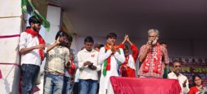 सुपौल. किशनपुर प्रखंड मुख्यालय स्थित उच्च माध्यमिक विद्यालय के मैदान में शनिवार को आयोजित चुनावी जनसभा में भाकपा के राष्ट्रीय महासचिव दीपांकर भट्टाचार्य ने महागठबंधन समर्थित भाकपा (माले) प्रत्याशी अनिल कुमार यादव के पक्ष में लोगों से वोट देने की अपील की. दीपांकर भट्टाचार्य ने अपने संबोधन में कहा कि महागठबंधन की सरकार बनते ही जिन घरों में सरकारी नौकरी नहीं है, उन घरों के एक सदस्य को सरकारी नौकरी दी जाएगी. उन्होंने घोषणा की कि मकर संक्रांति (14 जनवरी) के दिन शुरू होने वाली माई-बहिन मान योजना के तहत प्रत्येक महिला के खाते में सालाना 30 हजार दिए जाएंगे. साथ ही गैस सिलेंडर 500 में, विधवा एवं वृद्धजन पेंशन 1,500 प्रति माह, और 200 यूनिट मुफ्त बिजली देने का वादा किया. दीपांकर ने कहा, वे लोग कहते हैं घर-घर मोदी, लेकिन हम कहते हैं घर-घर सरकारी नौकरी. हमें मोदी नहीं, रोजगार चाहिए ताकि हर घर में विकास और सम्मान की रोशनी पहुंचे. उन्होंने जनता से अपील की कि सुपौल जिले के सभी पांच महागठबंधन उम्मीदवारों को विजयी बनाकर भेजें, ताकि बिहार में तेजस्वी यादव के नेतृत्व में नई सरकार बन सके. उन्होंने वर्तमान सरकार पर कटाक्ष करते हुए कहा, मुख्यमंत्री सिर्फ नाम के हैं, राज्य को कोई और चला रहा है. बिहार को बिहार का बेटा ही चला सकता है और उसके दर्द को वही समझ सकता है. सभा को संबोधित करते हुए राजद एमएलसी अजय कुमार सिंह ने कहा कि यह चुनाव बिहार की तकदीर बदलने का चुनाव है. उन्होंने कहा, आज राज्य में भ्रष्टाचार चरम पर है. सरकारी दफ्तरों में बिना रिश्वत के कोई काम नहीं होता. अब जनता ऐसी सरकार चाहती है जो पारदर्शी हो और जनता की आवाज बने. इस अवसर पर प्रत्याशी अनिल कुमार, संजय कुमार, राजद कार्यकारी जिलाध्यक्ष ई विद्याभूषण, जयप्रकाश कुमार (मंगल यादव), माले नेता जय नारायण यादव, कांग्रेस प्रखंड अध्यक्ष सगीर आलम समेत कई स्थानीय नेता मौजूद थे.