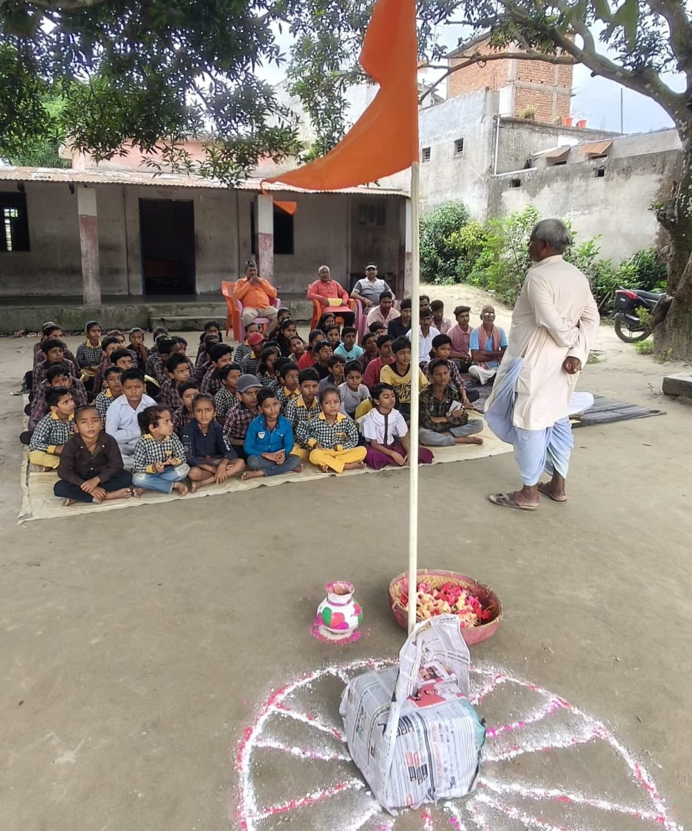 छातापुर. मुख्यालय स्थित बजरंग चौक के समीप सरस्वती शिशु मंदिर में गुरुवार को गुरु पूर्णिमा के अवसर पर गुरु दक्षिणा उत्सव का आयोजन किया गया. इस अवसर पर राष्ट्रीय स्वयं सेवक संघ के जिला कार्यवाह भोलेश्वर मुखिया शामिल हुए. जिला कार्यवाह ने गुरु पूर्णिमा के इतिहास के संदर्भ में विस्तृत चर्चा की. कहा कि मनुष्य जीवन में गुरु का बड़ा महत्व है. गुरु हमें हमेशा सर्वोत्तम मार्ग दिखाने को प्रयत्नशील रहते हैं. गुरु के बताये मार्ग पर चलकर मनुष्य अपने जीवन के उद्देश्य को सफल बना सकता है. इसलिए जीवन में गुरु का हर समय सम्मान करना चाहिए. उत्सव में भाजपा दक्षिणी मंडल अध्यक्ष पवन हजारी, वरिष्ठ नेता शालिग्राम पांडेय, गुंजन भगत, त्रिलोक झा, शिशु मंदिर के प्रधानाचार्य राहुल पाठक, आचार्य उत्तम पाठक, अमित कुमार, पुरुषोत्तम झा एवं भैया बहन शामिल हुए.