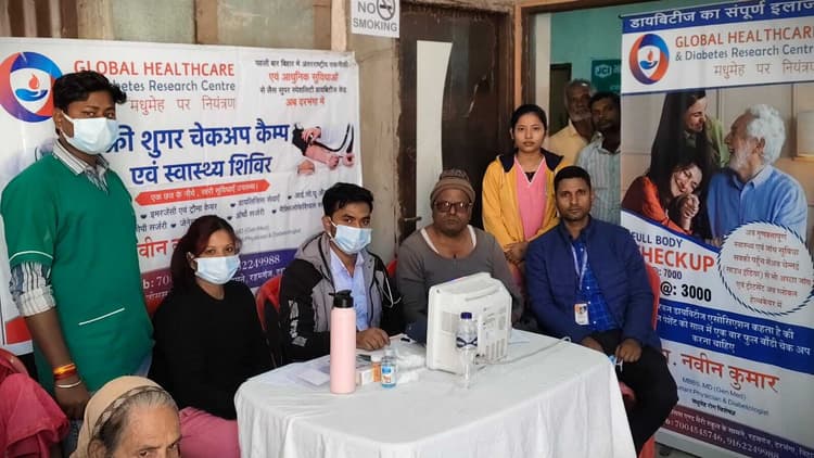 छातापुर. मुख्यालय बाजार स्थित जेसीआई भवन में रविवार को डायबिटीज जागरूकता अभियान के तहत चिकित्सा शिविर का आयोजन किया गया. ग्लोबल हेल्थ केयर एंड डायबिटीज रिसर्च सेंटर रहमगंज दरभंगा द्वारा आयोजित शिविर में नि:शुल्क रूप से रोगियों की जांच कर उचित परामर्श दिया गया. शिविर में चिकित्सक डॉ शमशाद सहित महिला व पुरुष चिकित्सा कर्मी शुगर, ब्लडप्रेशर, हार्ट की जांच के अलावे सामान्य रोग से ग्रसित लोगों के उपचार में जुटे रहे. डॉ शमशाद ने बताया कि जांच के बाद सभी मरीजों को ठंड के मौसम में ब्लडप्रेशर व शुगर को कैसे नियंत्रित रखा जाय तथा उनका खान पान कैसा हो इसको लेकर उचित परामर्श दिया गया. हॉस्पीटल के मार्केटिंग मैनेजर अमित आनंद ने बताया कि शिविर में करीब 150 मरीजों की स्वास्थ्य जांच कर उचित परामर्श दिया गया. बताया कि प्रखंड के सभी पंचायतों में यह शिविर नि:शुल्क रूप से लगाया जायेगा. जिसका उद्देश्य आर्थिक रूप से कमजोर लोगों को मधुमेह व रक्तचाप रोग के जोखिम व उससे बचाव के संदर्भ में जागरूक करना है. बताया कि हॉस्पीटल के एमडी डॉ नवीन कुमार का उद्देश्य डायबिटीज की रोकथाम कर उसे हराने का है. शिविर में नर्सिंग स्टाफ गौतम कुमार, पापीया सरकार, सुष्मिता शर्मा, अब्दुल, प्रशांत कुमार आदि सहयोग कर रहे थे.