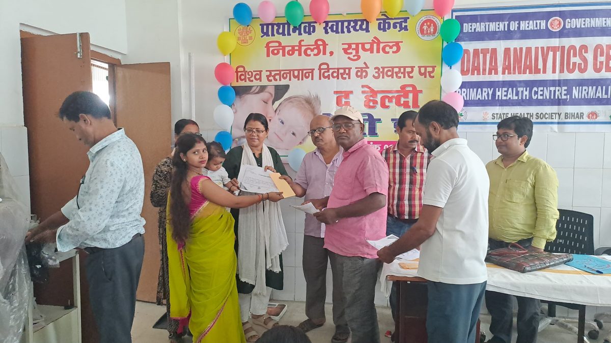– 16 बच्चों ने लिया हिस्सा, चार को हेल्दी बेबी के रूप में किया गया सम्मानित निर्मली. विश्व स्तनपान सप्ताह के अवसर पर बुधवार को अनुमंडल मुख्यालय निर्मली में हेल्दी बेबी शो कार्यक्रम का आयोजन किया गया. इस आयोजन में कुल 16 बच्चों ने भाग लिया, जिसमें से चार बच्चों को हेल्दी बेबी के रूप में चयनित कर सम्मानित किया गया. शेष प्रतिभागियों को सांत्वना पुरस्कार प्रदान किए गए. कार्यक्रम की अध्यक्षता कर रहे प्रखंड स्वास्थ्य प्रबंधक मुकेश कुमार ने बताया कि विश्व स्तनपान सप्ताह का मुख्य उद्देश्य है धात्री माताओं को जागरूक करना, जिससे शिशु मृत्यु दर और बाल मृत्यु दर में कमी लाई जा सके. उन्होंने कहा कि जन्म के तुरंत बाद और जीवन के पहले छह माह तक सिर्फ मां का दूध ही बच्चों के लिए सर्वोत्तम आहार है. इसके बाद दो साल तक स्तनपान के साथ ऊपरी आहार देना आवश्यक है. मुख्य अतिथि सीडीपीओ रंजना कुमारी ने उपस्थित माताओं और अभिभावकों को स्तनपान के महत्व की जानकारी दी. उन्होंने बताया कि स्तनपान न केवल बच्चों के पोषण के लिए, बल्कि उनकी बौद्धिक एवं शारीरिक विकास के लिए भी आवश्यक है. साथ ही सभी महिलाओं से अपील की कि वे अपने आसपास की महिलाओं को भी इसके प्रति जागरूक करें. कार्यक्रम में महिला पर्यवेक्षिका रितु कुमारी, आशा मैनेजर पंकज कुमार, अनुश्रवण पदाधिकारी अनिल कुमार, एएनएम प्रशिक्षण संस्थान के प्राचार्य, यूनिसेफ से अरुण कुमार, प्रभावित चिकित्सा पदाधिकारी डॉ सुरेंद्र कुमार सहित कई स्वास्थ्य कर्मी व प्रशिक्षु छात्राएं मौजूद रही. डॉ सुरेंद्र कुमार ने स्तनपान के चिकित्सकीय लाभ, परिवार नियोजन में इसकी भूमिका, और बच्चों की मानसिक क्षमता पर पड़ने वाले प्रभाव पर विस्तार से जानकारी दी. इस अवसर पर उपस्थित बच्चों और माताओं के बीच पौष्टिक आहार से संबंधित सामग्री का भी वितरण किया गया.