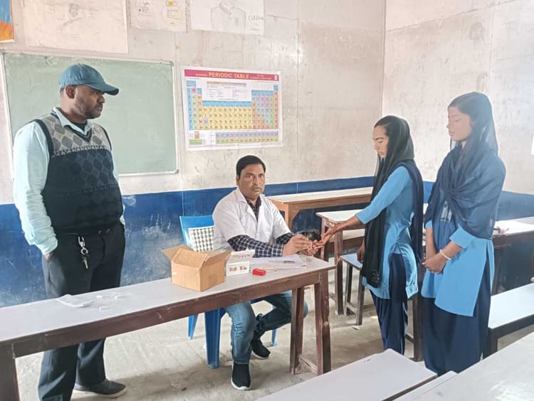 शिविर में छात्राओं के हीमोग्लोबिन की हुई जांच