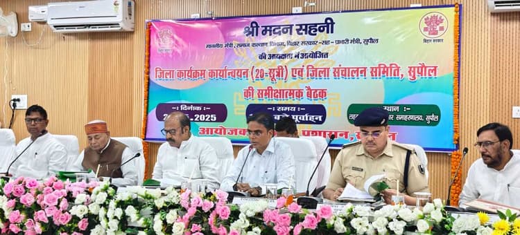 लहटन चौधरी सभागार में प्रभारी मंत्री ने 20 सूत्री कार्यक्रम व जिला संचालन समिति की समीक्षा बैठक सुपौल. समाहरणालय स्थित लहटन चौधरी सभागार में बुधवार को जिला कार्यक्रम कार्यान्वयन समिति (20 सूत्री) एवं जिला संचालन समिति की संयुक्त समीक्षा बैठक आयोजित की गई. बैठक की अध्यक्षता समाज कल्याण मंत्री एवं प्रभारी मंत्री मदन सहनी ने की. बैठक की शुरुआत में जिलाधिकारी कौशल कुमार व अन्य अधिकारियों द्वारा अतिथियों को पौधा भेंट कर पर्यावरण संरक्षण का संदेश दिया. मंत्री सहनी ने जिला स्तरीय योजनाओं की प्रगति की समीक्षा करते हुए अधिकारियों को योजनाओं के क्रियान्वयन में पारदर्शिता और समयबद्धता सुनिश्चित करने के निर्देश दिए. बैठक में विभिन्न विकासात्मक योजनाओं एवं कल्याणकारी कार्यक्रमों की प्रगति की समीक्षा की गई. अधिकारियों को निर्देश दिया गया कि जनहित से जुड़ी योजनाओं का लाभ पात्र लाभार्थियों तक समयबद्ध रूप से पहुंचे. सभी संबंधित विभागों को पारदर्शिता एवं उत्तरदायित्व के साथ कार्य करने हेतु आवश्यक दिशा-निर्देश दिए गए. साथ ही, जमीनी स्तर पर क्रियान्वयन में आ रही चुनौतियों को दूर करने के लिए समन्वित प्रयासों पर जोर दिया गया. बैठक में शिक्षा, स्वास्थ्य, महिला कल्याण सामाजिक सुरक्षा, पेयजल, सड़क निर्माण, पंचायत स्तरीय विकास योजना, डॉ अंबेडकर समग्र सेवा अभियान, मुख्यमंत्री समग्र शहर विकास योजना से संबंधित योजनाओं के बारे में विस्तार पूर्वक चर्चा की गयी. इस अवसर पर सांसद दिलेश्वर कामैत, पिपरा विधायक रामविलास कामत, पुलिस अधीक्षक शैशव यादव, जिला परिषद अध्यक्ष कमला देवी, डीडीसी सुधीर कुमार, जदयू जिलाध्यक्ष राजेंद्र यादव, भाजपा जिलाध्यक्ष नरेंद्र ऋषिदेव, नगर परिषद अध्यक्ष राघवेंद्र झा राघव, लखन ठाकुर, कुणाल ठाकुर, प्रदीप सिंह मुन्ना, ओम प्रकाश यादव, खुर्शीद आलम, राम कुमार राय, धर्मपाल, प्रमोद मंडल, जयंत मिश्रा, ललिता देवी, तब्सुम बानो, हरेकांत झा, सिकंदर सरदार, नूर आलम, केशव कुमार, विनिता देवी, नलिन जायसवाल, दिनेश राम, चक्रधर सिंह कुशवाहा, गौतम कुमार, प्रभाष मंडल सहित कई जनप्रतिनिधि एवं प्रशासनिक अधिकारी मौजूद रहे. पंचायत स्तर पर बने शवदाह गृह : सासंद सांसद दिलेश्वर कामैत ने जिला कार्यक्रम कार्यान्वयन समिति की बैठक में पंचायत स्तर पर शवदाह गृह का निर्माण कराने की मांग की. कहा कि सरकारी जमीन को चिन्हित कर उक्त स्थल पर शवदाह गृह का निर्माण कराया जाये. जिससे गरीबों को भटकना नहीं पड़े. उन्होंने खाद कालाबाजारी का भी मुद्दा उठाया. कहा कि खाद कालाबाजारी के कारण किसानों को भारी परेशानी का सामना करना पड़ता है. सांसद श्री कामैत ने अपराध पर अंकुश लगाने के लिए पुलिस गश्ती बढ़ाने की मांग की. नगर पंचाय