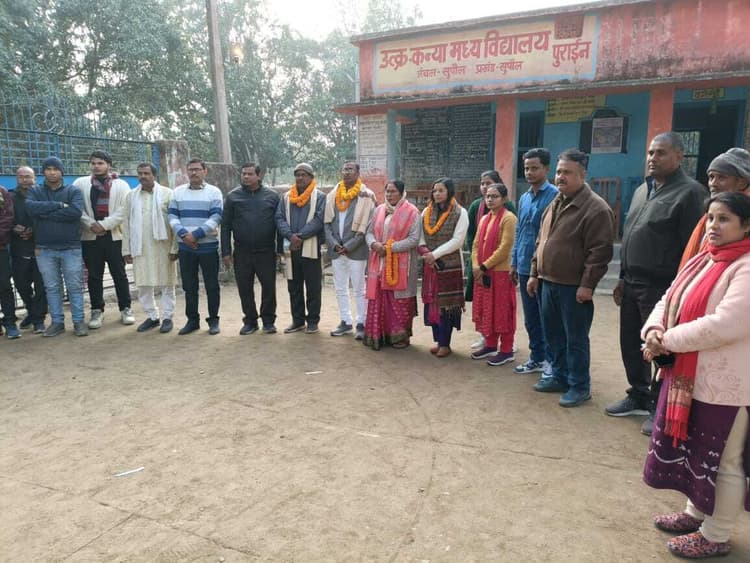सुपौल. सदर प्रखंड क्षेत्र अंतर्गत कन्या मध्य विद्यालय पुराईन के प्रधानाध्यापक वीरेंद्र कुमार राम के सेवानिवृति पर विदाई समारोह का आयोजन किया गया. विदाई समारोह की अध्यक्षता कर रहे विद्यालय प्रधान भूपेंद्र मंडल ने उनके शेष जीवन की मंगलकामना की. समारोह के मुख्य अतिथि वीरेंद्र कुमार राम ने कहा कि ऐसे सहयोगी के साथ कार्य करने का सौभाग्य विरले किसी को मिलता है. विदाई समारोह के संचालन करते हुए शैक्षणिक विचार मंच के संयोजक मुनेशवर सिंह ने कहा कि वीरेंद्र बाबू के द्वारा किए गए उत्कृष्ट कार्य को विद्यालय परिवार कभी नहीं भूल सकता है. उन्होंने कहा वीरेंद्र बाबू एक नेक दिल इंसान के साथ साथ हंसमुख और मिलनसार प्रवृत्ति के व्यक्ति हैं. उनका विद्यालय से जाना हमसबों को खालीपन का एहसास दिला रहा है. उनके सेवानिवृत्ति के अवसर उनकी पत्नी नूतन देवी, बेटी अनु कुमारी, अजय कुमार राम, अरूण कुमार, रीतेनदर कुमार सिंह, प्रवेश कुमार सिंह, दिव्या राय, चांदनी कुमारी, पूजा ठाकुर, मो मुर्शीद कमाल मौजूद थे.