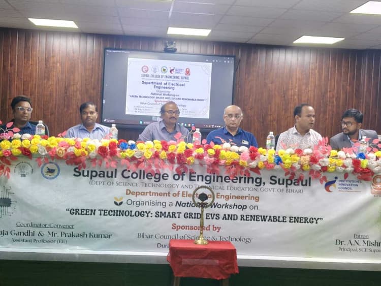 सुपौल. सुपौल कॉलेज ऑफ इंजीनियरिंग में ग्रीन टेक्नोलॉजी स्मार्ट ग्रिड, ईवी एंड रिन्यूएबल एनर्जी विषय पर तीन दिवसीय राष्ट्रीय सेमिनार का शुभारंभ हुआ. इस आयोजन का संचालन विद्युत अभियांत्रिकी विभाग ने बिहार काउंसिल ऑफ साइंस एंड टेक्नोलॉजी के सहयोग से किया. कार्यक्रम की शुरुआत राष्ट्रगान, दीप प्रज्वलन और सरस्वती वंदना से हुई. उद्घाटन सत्र को संबोधित करते हुए कॉलेज के प्राचार्य डॉ एएन मिश्रा ने कहा कि आने वाला समय नवीकरणीय ऊर्जा और पर्यावरण-अनुकूल तकनीक पर आधारित होगा. उन्होंने ग्रीन टेक्नोलॉजी को सतत विकास की कुंजी बताया. उद्घाटन सत्र में मुख्य अतिथि के रूप में डॉ भगवान श्रीराम (प्राचार्य, गवर्नमेंट इंजीनियरिंग कॉलेज, किशनगंज), डॉ अजय कुमार (सहायक प्राध्यापक, पूर्णिया इंजीनियरिंग कॉलेज) व देवानंद पटेल (प्रमुख, विद्युत विभाग, किशनगंज इंजीनियरिंग कॉलेज) मौजूद रहे. पहले दिन ग्रीन टेक्नोलॉजी से जुड़े कई पहलुओं पर विशेषज्ञों ने अपने विचार साझा किए. इसमें इलेक्ट्रिक व्हीकल, स्मार्ट ग्रिड और नवीकरणीय ऊर्जा जैसे विषयों पर विशेष चर्चाएं हुईं. अजय आनंद, नंदन कुमार राजू, पंकज सिंह और ओमप्रकाश दुबे ने तकनीकी प्रस्तुतियां दी. सेमिनार का संचालन डॉ राजा गांधी ने किया. इस अवसर पर इलेक्ट्रिकल इंजीनियरिंग विभाग के छात्र-छात्राओं ने उत्साहपूर्वक भाग लिया और विशेषज्ञों से नवीनतम जानकारियां प्राप्त की. तीन दिवसीय इस आयोजन का मुख्य उद्देश्य विद्यार्थियों और शोधकर्ताओं को ग्रीन टेक्नोलॉजी एवं नवीकरणीय ऊर्जा के क्षेत्र में हो रहे नए शोध और नवाचारों से परिचित कराना है.