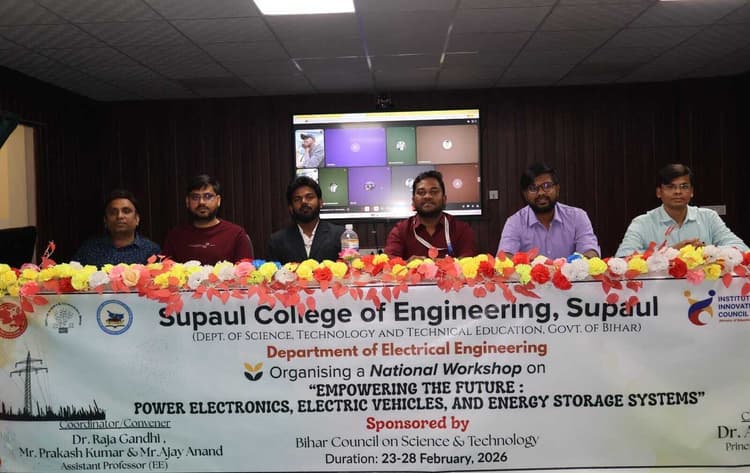 सुपौल. अभियंत्रण महाविद्यालय के विद्युत अभियंत्रण विभाग द्वारा आयोजित राष्ट्रीय कार्यशाला के तृतीय दिवस का आयोजन सफलतापूर्वक संपन्न हुआ. तृतीय दिवस पर देश के विभिन्न प्रतिष्ठित संस्थानों से आए विशेषज्ञों ने उन्नत तकनीकी विषयों पर अपने व्याख्यान प्रस्तुत किये. राजकीय अभियंत्रण महाविद्यालय गोपालगंज के असिस्टेंट प्रो अमित कुमार ने ग्रिड वोल्टेज में उतार-चढ़ाव की स्थिति में डीएफआईजी के सुदृढ़ नियंत्रण की आधुनिक तकनीकों पर विस्तार से चर्चा की. द्वितीय सत्र में लोकनायक जय प्रकाश प्रौद्योगिकी संस्थान के असिस्टेंट प्रो डॉ उमेश चौधरी ने एयरोडायनामिक डिज़ाइन, ब्लेड प्रोफाइल, दक्षता विश्लेषण एवं ऊर्जा उत्पादन के अनुकूलन पर प्रकाश डाला. तृतीय सत्र में बीजू पटनायक प्रौद्योगिकी विश्वविद्यालय, ओडिशा के डॉ सुमंत कुमार दलाई ने नवीकरणीय ऊर्जा प्रणालियों में मल्टीलेवल इन्वर्टर्स की भूमिका और उनके औद्योगिक अनुप्रयोगों पर प्रकाश डाला. अंतिम सत्र में राष्ट्रीय प्रौद्योगिकी संस्थान, गोवा के डॉ संदीप चौरसिया ने स्मार्ट ईवी चार्जिंग एवं बैटरी स्वैपिंग अवसंरचना, सोलर फोरकास्टिंग तथा ग्रिड इंटीग्रेशन की उन्नत तकनीकों से प्रतिभागियों को अवगत कराया. प्राचार्य डॉ ए एन मिश्रा इस कार्यक्रम के मुख्य संरक्षक हैं. उनके मार्गदर्शन एवं संरक्षण में कार्यशाला का आयोजन सुव्यवस्थित एवं सफलतापूर्वक संपन्न हो रहा है.