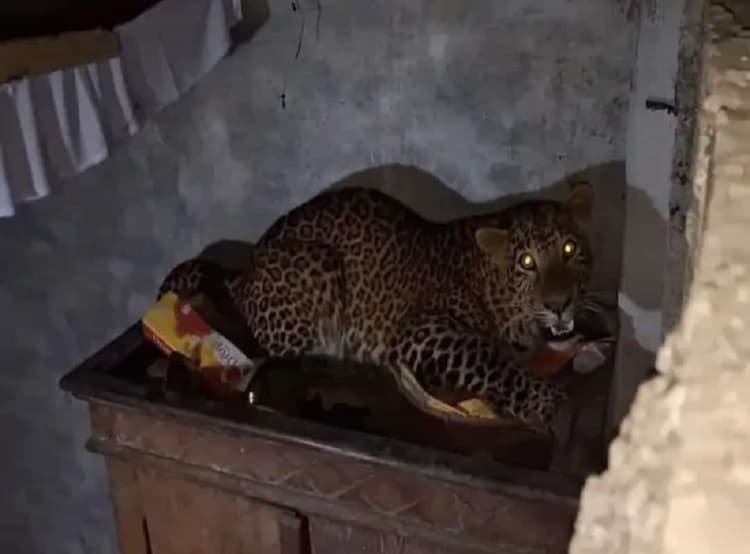 वहां मची अफरा-तफरी के बाद भाग कर तेंदुआ गुलाय मंडल के पूजा घर में घुस गया. लोग डरे हुए थे और उसे पकड़ने की कोशिश कर रहे थे, लेकिन तेंदुआ वहां से भी निकल भागा. देर शाम, एक महिला जब पूजा करने गई, तो उसने जानवर को पूजा घर में देखा और दरवाजा बंद कर दिया. जानवर ने पूजा घर की दीवार तोड़ने का प्रयास किया और फिर छत के टीन को तोड़कर बाहर निकल गया. इस दौरान तेंदुआ ने भगवानपुर पंचायत के पीआरएस शिवरंजन कुमार पर हमला कर जख्मी कर दिया. तेंदुआ एक अन्य कमरे में घुस गया, जिसमें दरवाजा नहीं था.