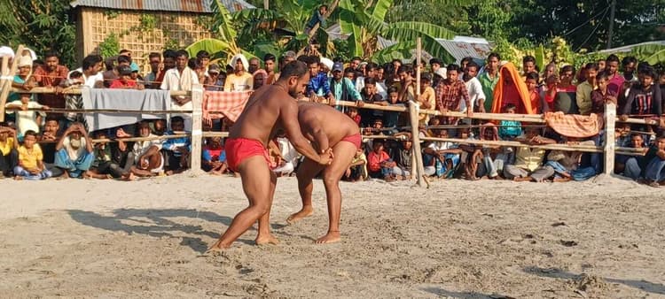 सरायगढ़. प्रखंड क्षेत्र के लोकहा पंचायत के नौनपार गांव में बुधवार विश्वकर्मा पूजा के अवसर पर दो दिवसीय कुश्ती प्रतियोगिता व्यापार मंडल के प्रखंड अध्यक्ष विजेंद्र प्रसाद यादव के नेतृत्व में आयोजित की गयी. कुश्ती प्रतियोगिता के शुभारंभ व्यापार मंडल के प्रखंड अध्यक्ष श्री यादव, मेला कमेटी के अध्यक्ष सत्यदेव प्रसाद यादव ने पहलवानों को हाथ मिलाकर किया. कुश्ती प्रतियोगिता में मधुबनी के संजय पहलवान ने नेपाल के छोटू पहलवान को काफी दांव पेंच के बाद पटकनी दी. अयोध्या के मंटू पहलवान ने झांसी के सुल्तान पहलवान को पटखनी दी. दो दिवसीय कुश्ती प्रतियोगिता कार्यक्रम में देश के विभिन्न राज्यों से पहलवानों ने भाग लिया है. जिसमें मधुबनी के कृष्ण देव पहलवान, नेपाल के बिरजू पहलवान, मधुबनी के दिलीप पहलवान, नेपाल के उपेंद्र थापा पहलवान, आगरा के भीम पहलवान, बनारस के विकास पहलवान, गोरखपुर के शहाउद्दीन पहलवान, अयोध्या के मिंटू पहलवान, मध्य प्रदेश के महाकाल पहलवान, झांसी के सुल्तान पहलवान, नेपाल के छोटे पहलवान, मधुबनी के बिरजू पहलवान सहित विभिन्न देश के विभिन्न राज्यों के पहलवानों ने कुश्ती प्रतियोगिता में भाग लिया. विजेंद्र प्रसाद यादव ने बताया कि कुश्ती प्रतियोगिता में प्रथम स्थान, द्वितीय स्थान और तृतीय स्थान पाने वाले पहलवानों को नगद राशि देकर सम्मानित किया जायेगा. कुश्ती प्रतियोगिता के सफल संचालन करने में मुकेश कुमार मेहता, रामकिशुन मेहता सहित अन्य लोगों का योगदान रहा.