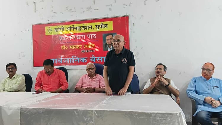 सुपौल नगर भवन में आगामी सितंबर माह में एक दिवसीय मिथिला महोत्सव का भव्य आयोजन किया जाएगा. महोत्सव की तैयारियों को लेकर रविवार को इंडियन रेडक्रॉस सोसाइटी सभागार में एक बैठक आयोजित की गई, जिसमें जिले के बुद्धिजीवियों, साहित्यकारों और समाजसेवियों ने भाग लिया. बैठक में सर्वसम्मति से महोत्सव के संयोजक के रूप में मुख्य पार्षद राघवेन्द्र झा को मनोनीत किया गया. बैठक के पहले सत्र में मैथिली लेखक-कवि डॉ भास्कर ज्योति ने अपनी आगामी यात्रा संस्मरण पुस्तक के अंशों का पाठ किया, जिसमें डेनमार्क यात्रा का सजीव चित्रण प्रस्तुत किया गया. इस सत्र की अध्यक्षता प्रसिद्ध साहित्यकार डॉ महेन्द्र ने की. जबकि संचालन किसलय कृष्ण ने किया. साहित्यिक-सांस्कृतिक योगदान पर चर्चा करते हुए केदार कानन ने अतिथियों का स्वागत किया. इस अवसर पर मैथिली भाषा शोध परिषद, बड़ौदा के प्रमुख मनीष ठाकुर और डॉ भास्कर ज्योति को पाग, शॉल और प्रतीक चिन्ह देकर सम्मानित किया गया. मिथिला महोत्सव में होंगी सांस्कृतिक प्रस्तुतियां दूसरे सत्र में मिथिला महोत्सव की रूपरेखा तय की गई. यह महोत्सव मिथिला की कला, संस्कृति, खानपान और साहित्य को समर्पित होगा. इसमें गीत-संगीत, नृत्य, व्यंजन प्रदर्शनी और साहित्यिक गोष्ठियां आयोजित की जाएंगी. बैठक में इंडियन रेडक्रॉस सोसाइटी के अध्यक्ष डॉ कन्हैया सिंह, उपाध्यक्ष सुब्रत मुखर्जी, पवन अग्रवाल, सर्वेश झा, डॉ महेन्द्र, रामकुमार चौधरी, केशव अग्रवाल, संजय झा, विश्वनाथ सर्राफ, डॉ रेणु झा, डॉ संजय वशिष्ठ, नृपेशचंद्र झा, नमिता झा, कुमार विक्रमादित्य, सच्चिदानंद सौरभ, राजेश कुमार मल्लिक, मधु कुमारी, अनीस झा, मिलन कुमार सहित आदि मौजूद थे. बैठक में उपस्थित सभी बुद्धिजीवियों ने महोत्सव को सफल बनाने के लिए अपने महत्वपूर्ण सुझाव दिए.