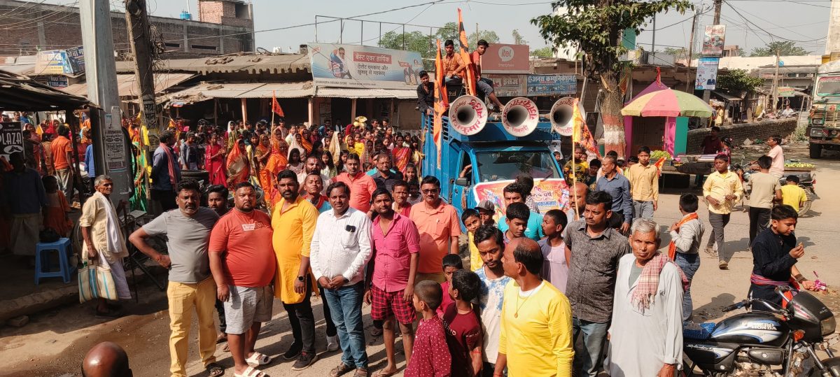 राघोपुर. चैत्र नवरात्र के प्रथम दिन व हिन्दू नववर्ष के मौके पर रविवार की सुबह प्रखंड क्षेत्र के सिमराही नगर पंचायत स्थित गुलाबदास ठाकुरबाड़ी समीप सार्वजनिक दुर्गा मंदिर के प्रांगण से प्रभातफेरी निकाली गई. जिसमें दर्जनों की संख्या में लोगों ने भाग लिया. प्रभातफेरी मंदिर प्रांगण से निकलकर नगर के विभिन्न गली मोहल्ले व सड़कों का भ्रमण करते हुए पुनः मंदिर परिसर में आकर समापन किया गया. इस दौरान लोगों से अपील किया गया कि चैत्र शुक्ल पक्ष प्रतिपदा हिन्दू नववर्ष के अवसर पर अपने घर व दुकान के ऊपर एक भगवा ध्वज लगाएं, साथ ही संध्या के समय घरों व दुकानों में पांच दीप प्रज्ज्वलित कर खुशियां मनाएं. पूरी प्रभातफेरी के दौरान जय श्री राम के नारों से पूरा नगर क्षेत्र गुंजायमान रहा. वहीं इस प्रभातफेरी को लेकर लोगों के बीच भी खासा उत्साह देखने को मिला, साथ ही लोगों ने भी इस प्रभातफेरी का भव्य स्वागत किया.