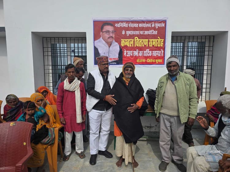 गनौरा पंचायत सरकार भवन में मुखिया ने पंचायत के एक हजार जरूरतमंदों के बीच कंबल का किया वितरण