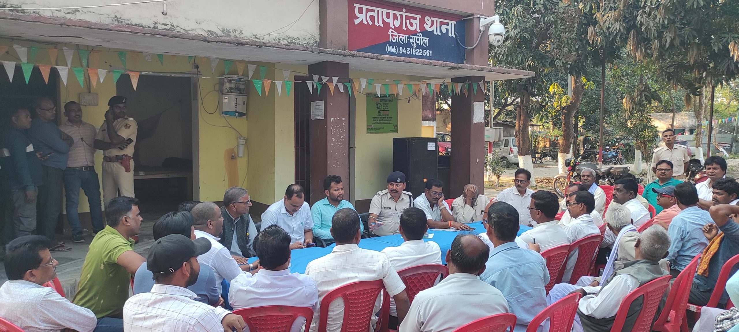 प्रतापगंज प्रखंड क्षेत्र में ईद पर्व और रामनवमी के दिन निकलने वाली शोभायात्रा को शांतिपूर्ण वातावरण में सम्पन्न कराने के लिए थाना परिसर में शांति समिति की बैठक की गई. जिसकी अध्यक्षता बीडीओ अमरेश कुमार मिश्र और थानाध्यक्ष प्रमोद झा ने संयुक्त रूप से की. बीडीओ श्री मिश्रा ने प्रखंड क्षेत्र में रमजान के समापन पर ईद पर्व और रामनवमी के दिन निकलने वाली शोभा यात्रा को शांति, सद्भाव और आपसी भाईचारा के साथ सम्पन्न कराने की अपील की. उन्होंने कहा कि दोनों हीं पर्व भाईचारे और शांति सदभाव का पर्व है. इसे शांतिपूर्ण वातावरण में सम्पन्न कराना हम सबों का दायित्व बनाता है. प्रशिक्षु सीओ मुकेश कुमार यादव ने गणमान्य लोगों से ईद पर्व और रामनवमी को शांति और सौहार्द के वातावरण में सम्पन्न कराने का निवेदन किया. थानाध्यक्ष श्री झा ने कहा कि इस मौके पर डीजे बजाना प्रतिबंधित है. ऐसा करने वाले के विरुद्ध सख्त कार्रवाई की जायेगी. उन्होंने लोगों से अपील किया कि अफवाहों पर ध्यान नहीं देंगे. असामाजिक तत्वों द्वारा फैलाई जाने वाली अफवाहों की सूचना मिले तो अविलंब पुलिस को सूचित करें. बैठक में मौजूद पूर्व विधायक लखन ठाकुर सहित गणमान्य लोगों ने प्रशासन को आश्वस्त किया कि प्रखंड क्षेत्र में हर पर्व आपसी सहयोग भाईचारे के साथ हमलोग निभाते आ रहे हैं. बैठक में पूर्व प्रमुख रमेश प्रसाद यादव, मुखिया रणजीत प्रसाद यादव, प्रताप विराजी, कृष्ण प्रसाद मंडल, महानंद पासवान, विजय भुसकुलिया, उमेश गांधी, सुरेश दास, अनिल कुमार टीपू, अजीजुर्रहमान, बौआ नांग, ललित भगत, नारायण पादुका, सरपंच प्रवीण महतो, मो मजीद साफी, रीत नारायण कुसियैत, प्रदीप बसेदार पप्पू, श्याम यादव, विवेक यादव, दिलीप यादव आदि मौजूद थे.