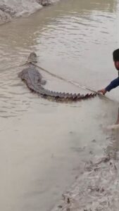 फूलकाहा वितरणी में लोगों ने 10 फीट के मगरमच्छ को पकड़ा