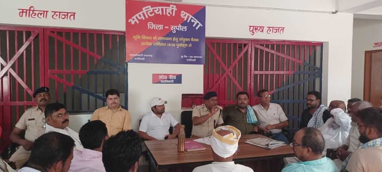 – बकरीद पर्व को लेकर भपटियाही थाना में हुई शांति समिति की बैठक – सुरक्षा को लेकर सार्वजनिक स्थलों पर पुलिस बलों की रहेगी तैनाती सरायगढ़. आगामी 07 जून को होने वाले बकरीद पर्व को लेकर भपटियाही थाना में रविवार को शांति समिति की बैठक आयोजित की गयी. बैठक की अध्यक्षता सीओ धीरज कुमार ने की. बैठक में संबोधित करते हुए प्रखंड प्रमुख विजय कुमार यादव ने बकरीद पर्व आपसी भाईचारे के साथ सौहार्दपूर्ण वातावरण में मनाने की बात कही. बीडीओ अच्युतानंद ने बकरीद पर्व आपसी भाईचारे के साथ मनाने की अपील पंचायत के जनप्रतिनिधियों से की. थानाध्यक्ष संजय दास ने कहा कि बकरीद पर्व के अवसर पर असामाजिक तत्वों पर पुलिस की पैनी नजर रहेगी. किसी भी प्रकार की घटना दुर्घटना होने पर पुलिस को इसकी सूचना दें. पुलिस त्वरित कार्रवाई करेगी. थानाध्यक्ष ने बकरीद पर्व के दौरान क्षेत्र में शांति और सद्भाव का वातावरण कायम रखने के लिए पंचायत जनप्रतिनिधियों से सहयोग की अपील की. थानाध्यक्ष ने कहा कि 07 जून को होने वाले बकरीद पर के दौरान सार्वजनिक स्थल एवं ईदगाहों में नवाज अदा की जाएगी. कहा कि पर्व के दौरान सुरक्षा व्यवस्था को लेकर विभिन्न चौक-चौराहे पर पुलिस बलों को नियुक्त किया जाएगा. बैठक में एसआई रामराज सिंह, विनय कुमार, पूर्व मुखिया सुरेश प्रसाद सिंह, मुखिया विजय कुमार यादव, मनोज यादव, सुखदेव पंडित, राजेंद्र प्रसाद साह, विजय कुमार सिंह, इफ्तिखार अहमद, मो शरीफुल्लाह, मो खलील, मो सलीम, मो अब्दुल्ला, मो अलाउद्दीन, मो फरमुद आलम, शिवराम यादव, शिवनंदन मुखिया, चंदन मोदी सहित बड़ी संख्या में पंचायत के जनप्रतिनिधि और स्थानीय ग्रामीण मौजूद थे.