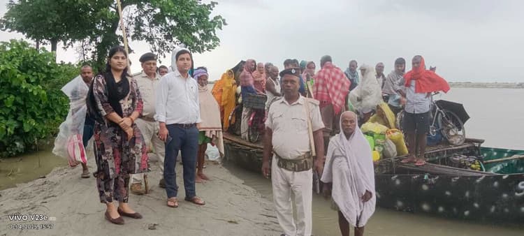 कुनौली. लगातार हो रही झमाझम बारिश के बीच शनिवार को डगमारा, कमलपुर और दिघिया क्षेत्र के फ्लड इफेक्टेड इलाकों का निरीक्षण अंचलाधिकारी विजय प्रताप सिंह और रेवेन्यू ऑफिसर साहिना बेगम ने किया. निरीक्षण के दौरान प्रशासन ने नदी के बढ़ते जल स्तर को देखते हुए नाविकों और गोताखोरों को अलर्ट रहने और सुरक्षा दिशा-निर्देशों का पालन करने के लिए निर्देश दिए. अंचलाधिकारी ने कहा कि लगातार बारिश के कारण नदी के जलस्तर में वृद्धि होने की संभावना है, इसलिए अधिकारियों और ग्रामीणों को हमेशा सतर्क और सावधान रहना आवश्यक है. उन्होंने कहा कि प्रशासन का मुख्य उद्देश्य लोगों को किसी भी प्रकार की असुविधा या दुर्घटना से बचाना है. इस दौरान आवश्यक संसाधनों, नाव और बचाव उपकरणों की तैयारी की भी समीक्षा की गयी.