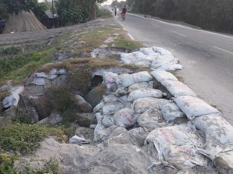 सरायगढ़. पूर्वी कोसी तटबंध सह सीमा सुरक्षा सड़क में जगह-जगह रेनकट बन जाने से दुर्घटना की आशंका बनी रहती है. बताया जाता है कि भपटियाही, कल्याणपुर, गौरीपट्टी, नौनपार, वैसा, सिमरी, कोढली, लोकहा, गोपालपुर सहित अन्य गांव के पास भी पूर्वी कोसी तटबंध सह सीमा सुरक्षा सड़क के दोनों किनारे खतरनाक रेनकट बना हुआ है. सीमा सुरक्षा सड़क से प्रतिदिन बड़ी संख्या में वीरपुर, भीमनगर, नेपाल सहित अन्य जगहों के लिए लोग वाहनों से आते-जाते हैं, लेकिन सड़क में रेनकट के कारण बराबर दुर्घटना घटती रहती है. भपटियाही पंचायत के मुखिया विजय कुमार यादव, लोकहा पंचायत की मुखिया महारानी देवी, मनोज यादव आदि ने जिला प्रशासन से सड़क में बने रेनकट की जल्द मरम्मत कराने की मांग की है. उधर, जल संसाधन विभाग के जेई महंत किशोर दास ने बताया कि पूर्वी कोसी तटबंध सह सीमा सुरक्षा सड़क में बने रेनकट की जल्द मरम्मत कराई जाएगी.