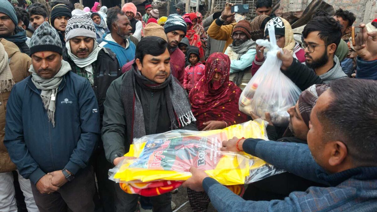 अग्नि पीड़ितों के बीच राहत सामग्री वितरित