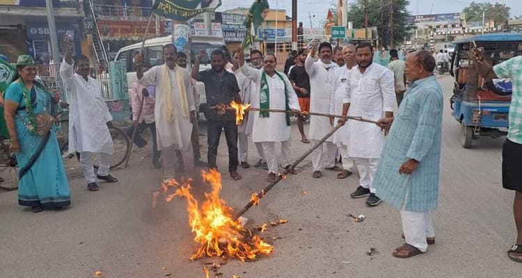 – नीतीश-मोदी का पुतला दहन – कुंदन कृष्णन को बर्खास्त करने की मांग, किसान सम्मान की रक्षा को लेकर आर-पार की लड़ाई का ऐलान सुपौल. राष्ट्रीय जनता दल के नेतृत्व में रविवार को लोहियानगर चौक पर केंद्र और राज्य सरकार के खिलाफ एक जबरदस्त विरोध प्रदर्शन आयोजित किया गया. सैकड़ों की संख्या में जुटे राजद कार्यकर्ताओं व पदाधिकारियों ने मुख्यमंत्री नीतीश कुमार और प्रधानमंत्री नरेंद्र मोदी का पुतला दहन कर जोरदार नारेबाजी की. यह विरोध प्रदर्शन बिहार सरकार के वरिष्ठ अधिकारी कुंदन कृष्णन द्वारा किसानों के खिलाफ दिए गए अपमानजनक और अमर्यादित बयान के विरोध में आयोजित किया गया. राजद नेताओं ने इसे न सिर्फ किसानों के आत्मसम्मान पर सीधा हमला बताया, बल्कि सरकार की किसान-विरोधी मानसिकता का जीता-जागता उदाहरण भी करार दिया. कार्यक्रम की अध्यक्षता राजद किसान प्रकोष्ठ, जिला अध्यक्ष मोहन यादव ने की. अपने संबोधन में उन्होंने कहा, बिहार का किसान न तो अब अपमान सहेगा और न ही चुप बैठेगा. कुंदन कृष्णन को या तो माफी मांगनी होगी या पद छोड़ना होगा. विरोध प्रदर्शन के दौरान राजद कार्यकर्ताओं ने किसान का अपमान नहीं सहेगा हिंदुस्तान, कुंदन कृष्णन माफ़ी मांगो या कुर्सी छोड़ो, अब अन्याय पर चुप्पी नहीं, संघर्ष होगा जैसे गगनभेदी नारे लगाते हुए सरकार को चेताया कि यदि मांगें नहीं मानी गईं तो यह आंदोलन राज्यव्यापी रूप लेगा. इस मौके पर बड़ी संख्या में राजद के वरिष्ठ नेता व कार्यकर्ता उपस्थित थे जिनमें विशेष रूप से अनोज आर्य उर्फ लव यादव, विजय कुमार यादव, दिनेश यादव, मो मुस्ताक, विनोद कुमार यादव, मदन पासवान, पप्पू कुमार प्रवीण, विनोद शर्मा, चंद्रिका देवी, विद्या देवी, इरफान बिहारी, श्याम यादव, सीताराम मंडल, प्रदीप पांडे, नरेश यादव, अमित कुमार, नागेश्वर प्रसाद, गजेंद्र यादव, रौनक कुमार, रूपेश शर्मा, राजू कुमार, मो कलाम आदि प्रमुख रूप से शामिल रहे.