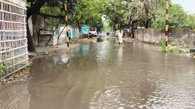 एक दिन की बारिश में ही सड़क हुआ जल मग्न, पैदल चलना भी हो रहा मुश्किल