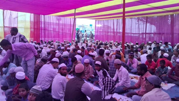 बलुआ बाजार. ललितग्राम थाना क्षेत्र के ललितग्राम स्टेशन के समीप पीएसआई दिलीप कुमार चौधरी के आवासीय परिसर में शनिवार को दावत ए इफ्तार पार्टी का आयोजन किया गया. दावत ए इफ्तार पार्टी में बलुआ, ललितग्राम, लक्ष्मीनियां, डोडरा, मधुबनी आदि गांव के रोजेदार व गणमान्य नागरिक शामिल हुए. जिन्होंने लजीज व्यंजनों का आनंद लेते सामाजिक सोहार्द का संदेश दिया. ललितग्राम थानाध्यक्ष संजना कुमारी की अध्यक्षता में आयोजित दावत ए इफ्तार का नेतृत्व पीएसआई दिलीप कुमार चौधरी ने की. सभी रोजेदारों ने देश में अमन व चैन के लिए दुआएं मांगी. मगरिब की अजान सुनकर सभी रोजेदारों ने रोजा तोड़ा. रोजेदारों ने बताया कि यह पाक महीना रहमतों व बरकतों से भरपूर है. इस महीने में अल्लाह अपने बंदों पर खास रहमत बरसाता है. कहा कि जो शख्स रोजेदार को इफ्तार कराता है. अल्लाह उस शख्स को रोजेदार के बराबर सवाब अता फरमाता है. इस प्रकार का इफ्तार पार्टी का आयोजन से आपसी भाईचारा भी बढ़ता है. अल्लाह ताआला रमजान माह में एक नेकी के बदले 70 गुना सबाब बढ़ा देता है. वहीं पूर्व मुखिया शमशुल हौदा, मित्तुलाह खान, पैक्स अध्यक्ष पिरोज आलम, सोनू आलम आदि ने बताया कि इससे पूर्व ललितग्राम थाना में दावत ए इफ्तार का आयोजन कभी भी नहीं किया गया था. लेकिन आज पीएसआई दिलीप कुमार चौधरी व थानाध्यक्ष संजना कुमारी के द्वारा यह इफ्तार दावत देकर आपसी भाईचारे का बहुत बड़ा पैगाम दिया गया है. इस मौके पर शशि भूषण सिंह, संजीव कुमार सुमन, डॉ फिरोज, मुस्तफा, दिनेश प्रसाद गुप्ता, मित्तुल्लाह खान, मो फिरोज, शमशुल हौदा, गुड्डू आलम, प्रमोद झा, वीरेंद्र यादव, मोजिव खान, मो तसोवर आलम, सोनू आलम, संजीव कुमार मंडल, मनीष कुमार, अमृत सागर झा आदि मौजूद थे.